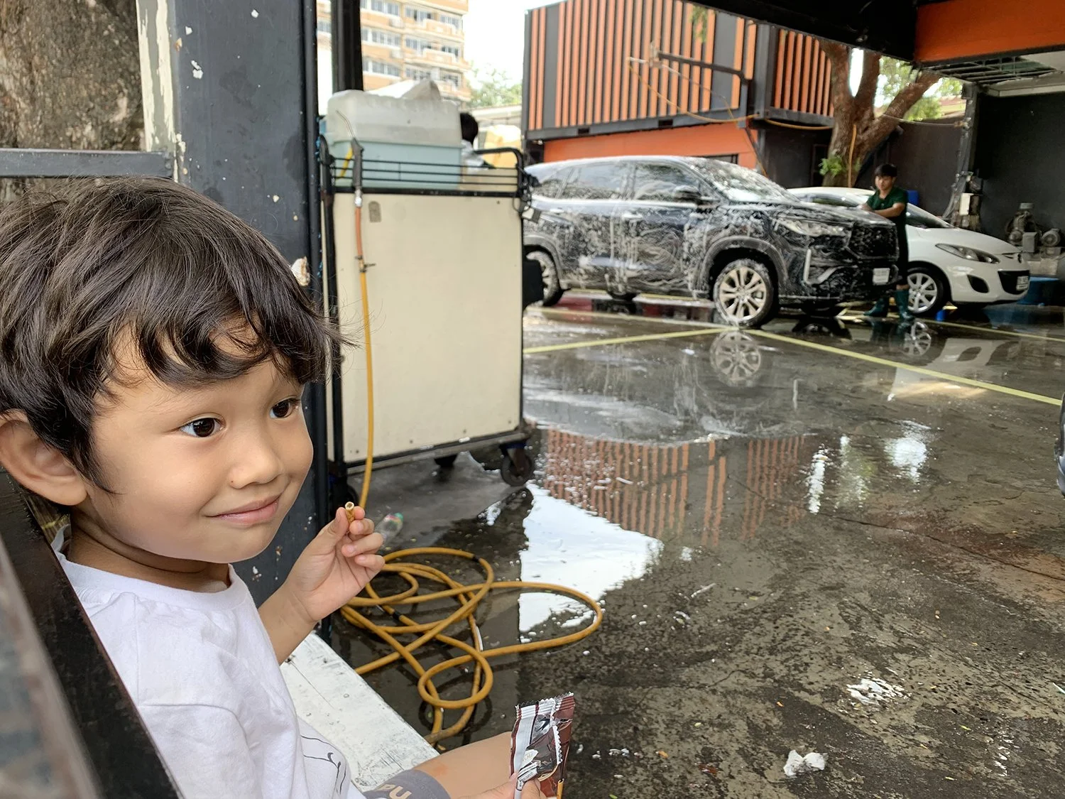 Meanwhile, Dad and Arlo took the car for a wash.