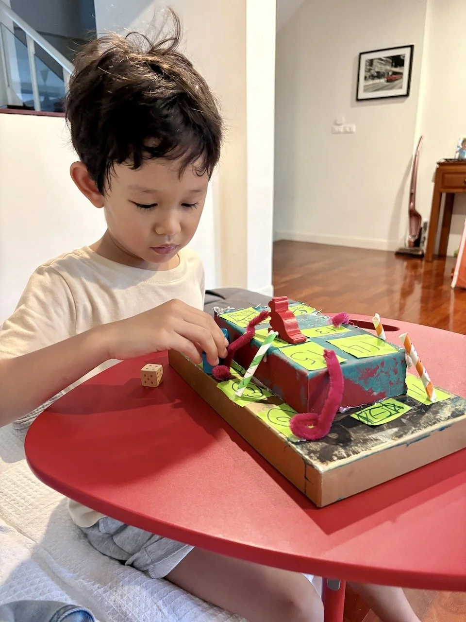 Arlo left me a secret note, and a corresponding code on the red (orange) chair... to come sit with him and practice piano!