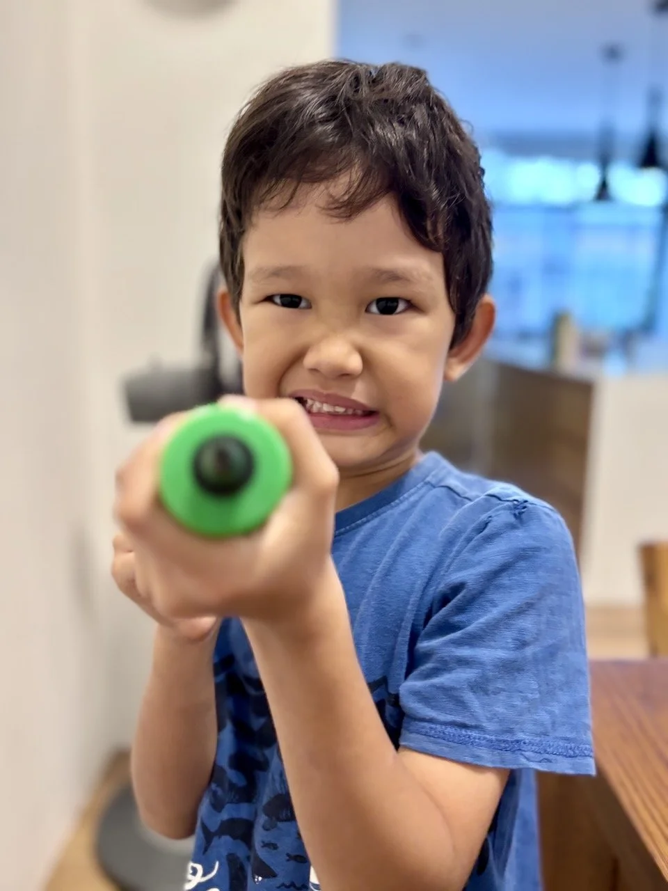 Excited to start his school week with a giant bowl of milo balls. (And another, and another.)