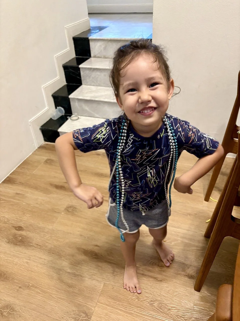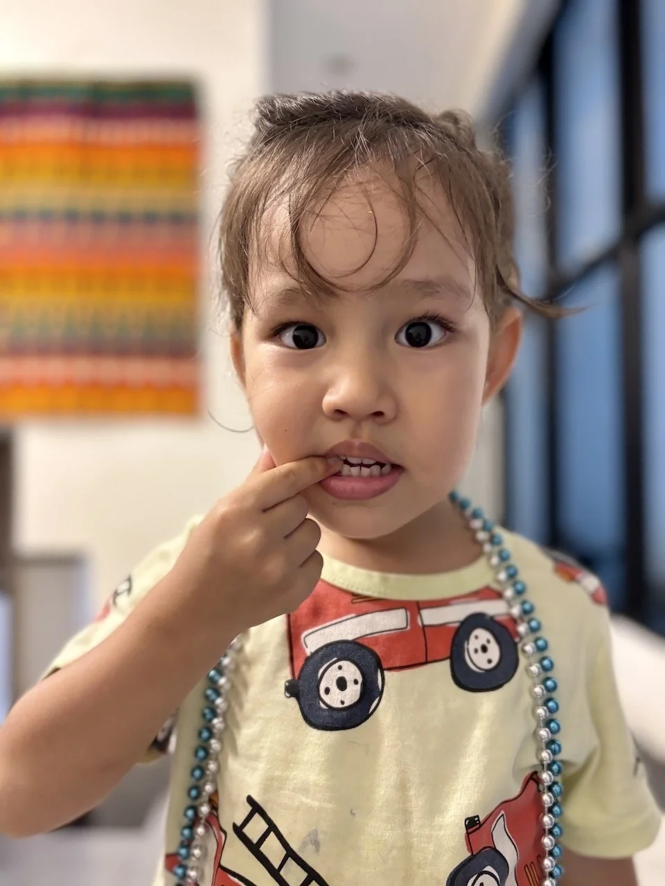 Wearing a shirt that only left Arlo's rotation recently. Looks good on you, Lucy!