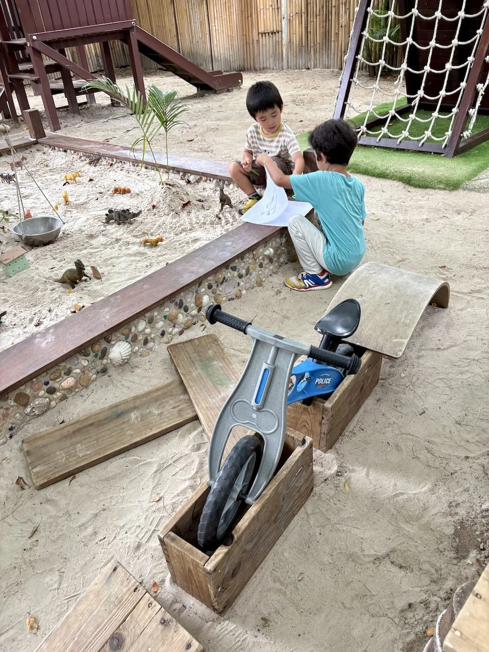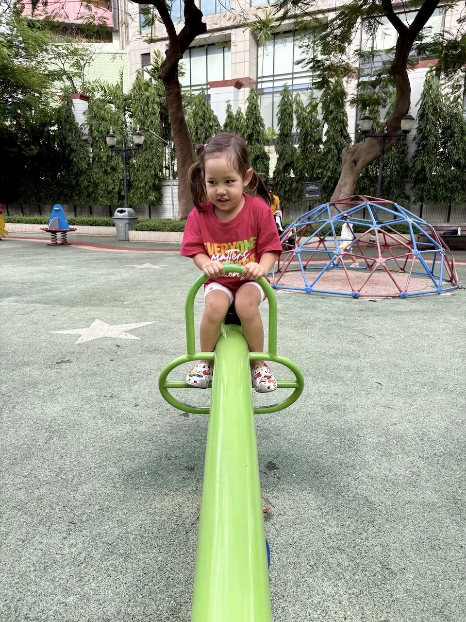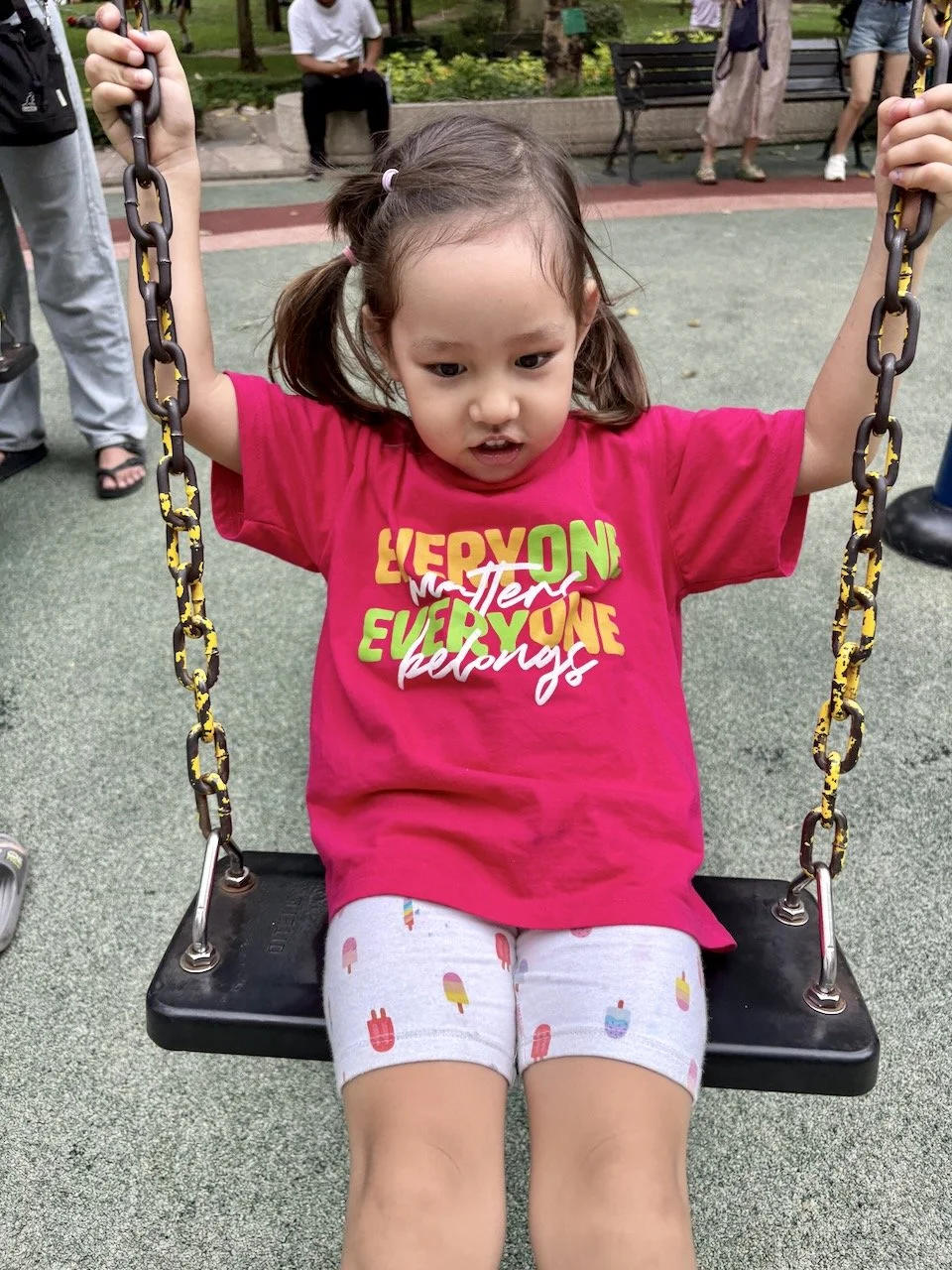 Coasting. "Do like this, Mum! Lift up your legs!"