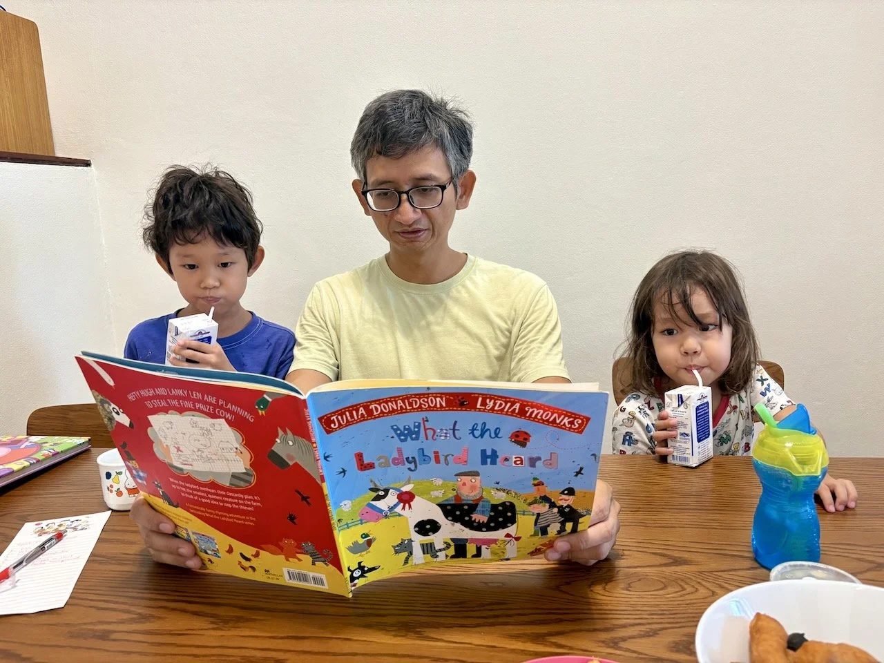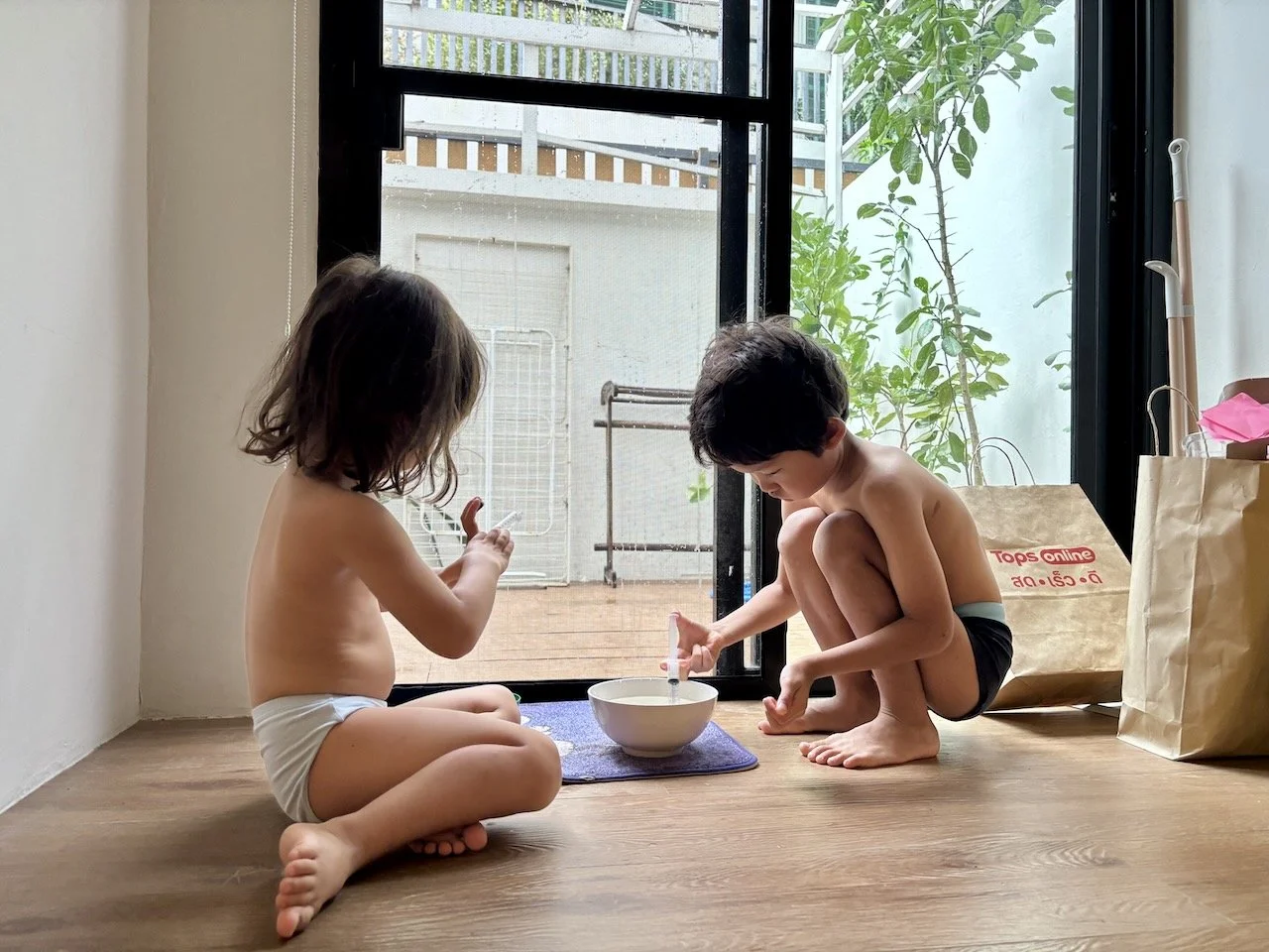 Arlo comes for the chicken nuggets, and Lucy for the rice and fries.