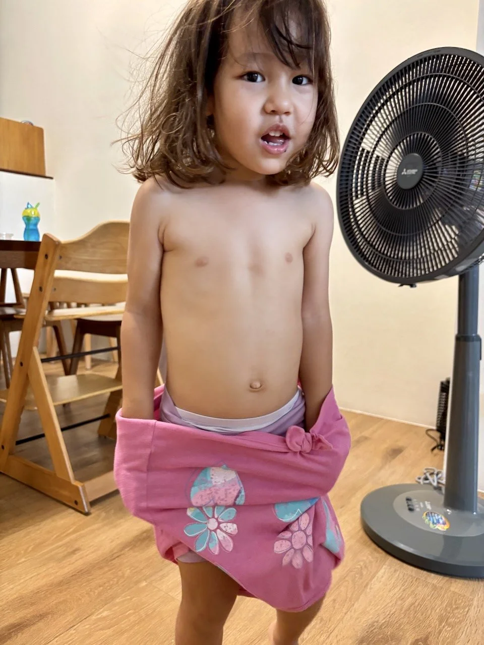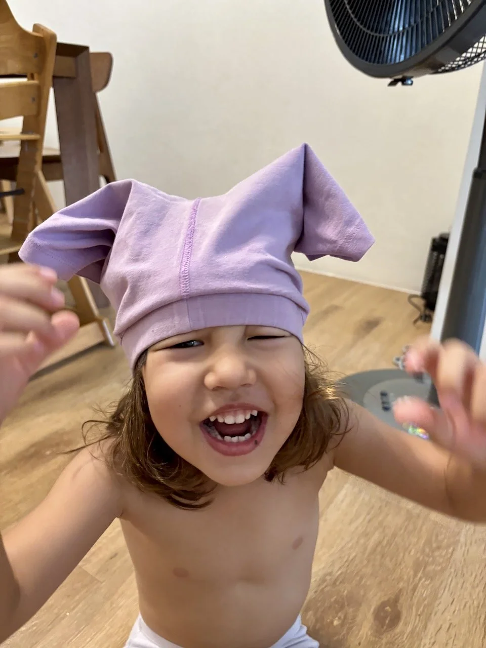 Lucy monkey, showing that she knows how to get dressed by herself (but chooses not to).