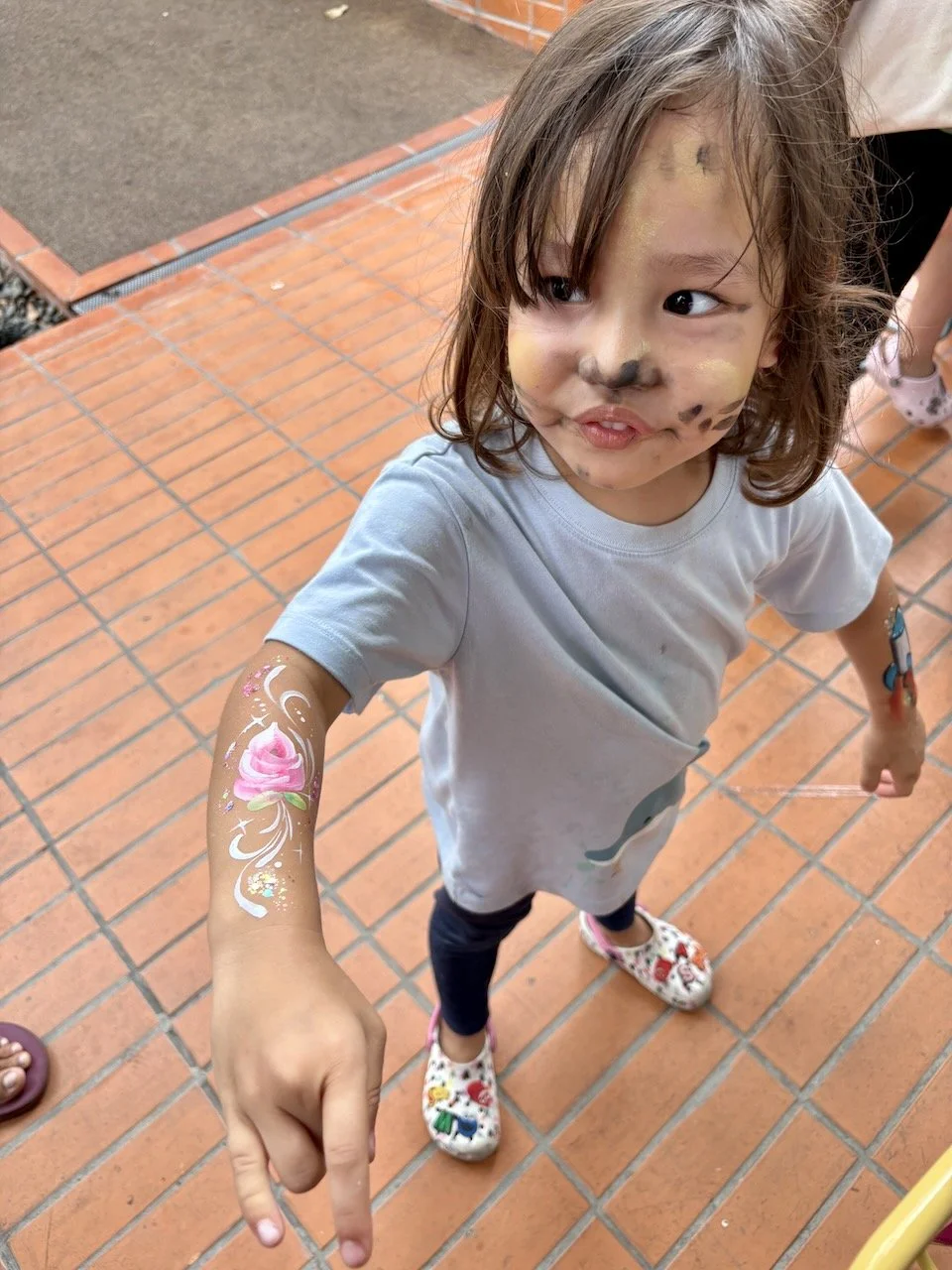 First day / last day! (If nothing else, the school introduced her to face paint!)