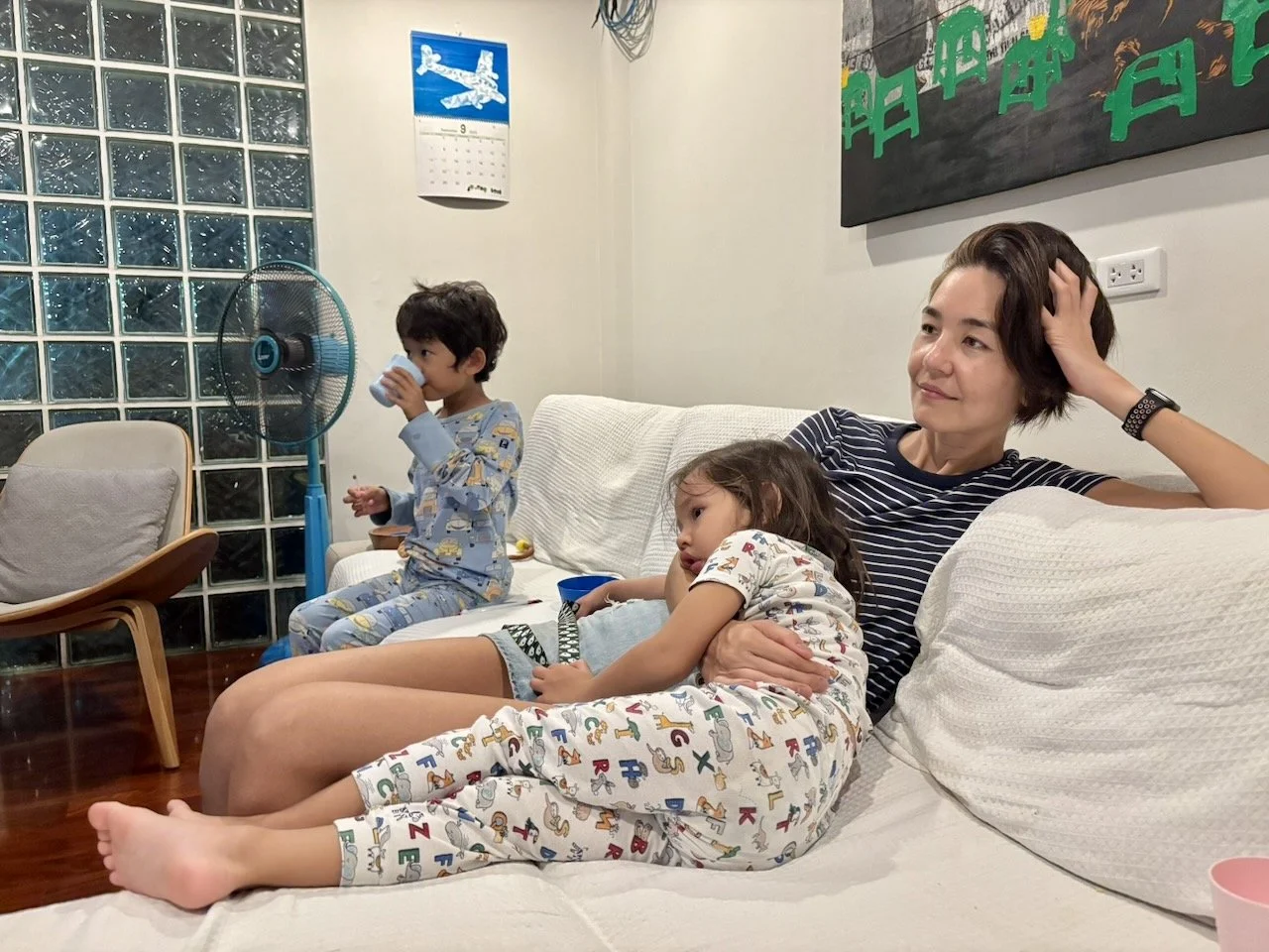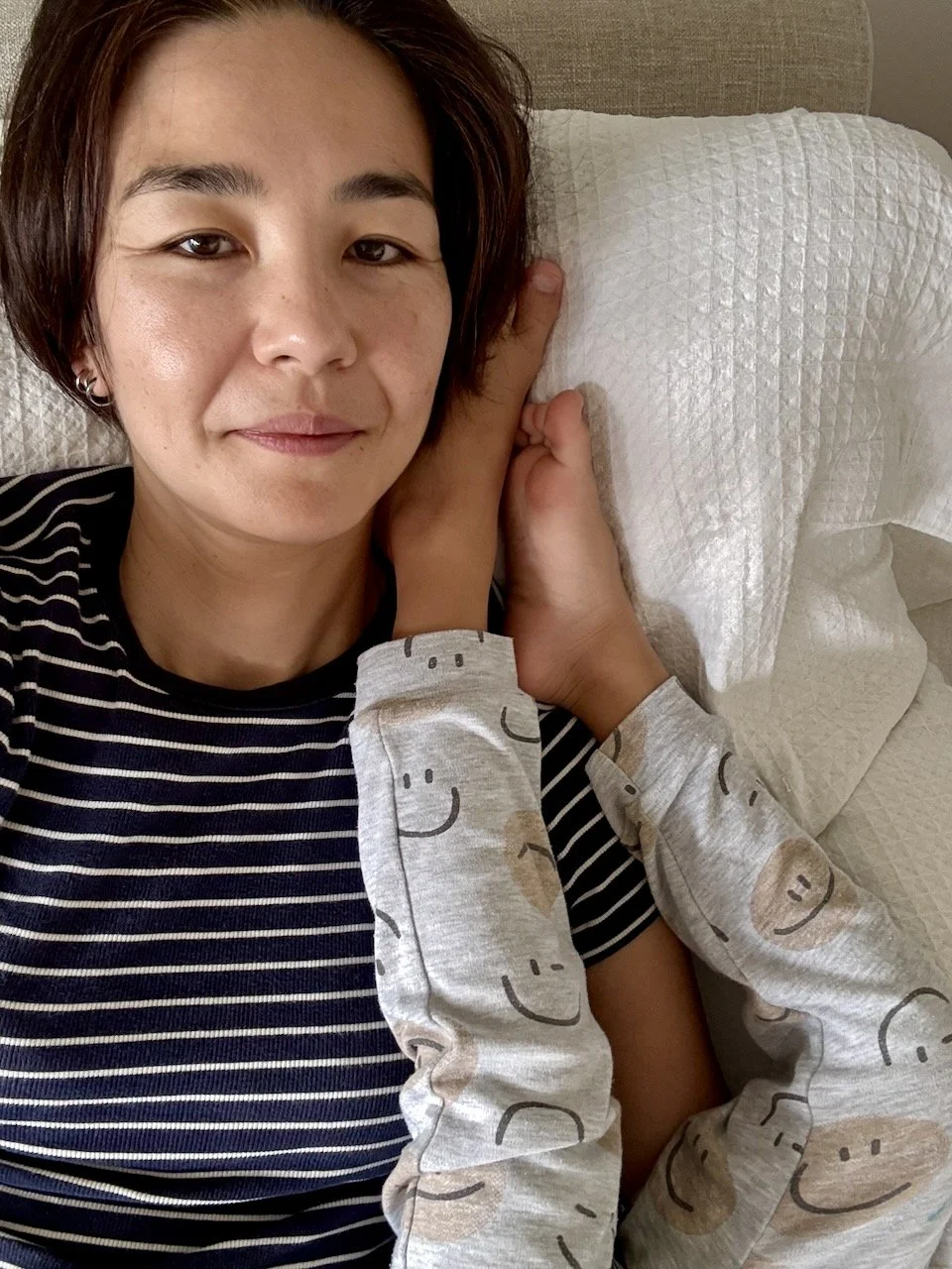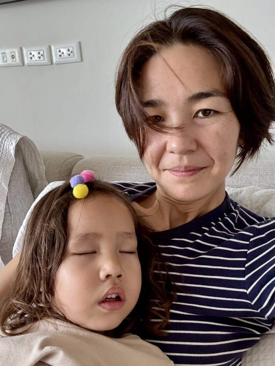 Lucy's still not fully recovered, and takes a 90-min nap on top of mum.