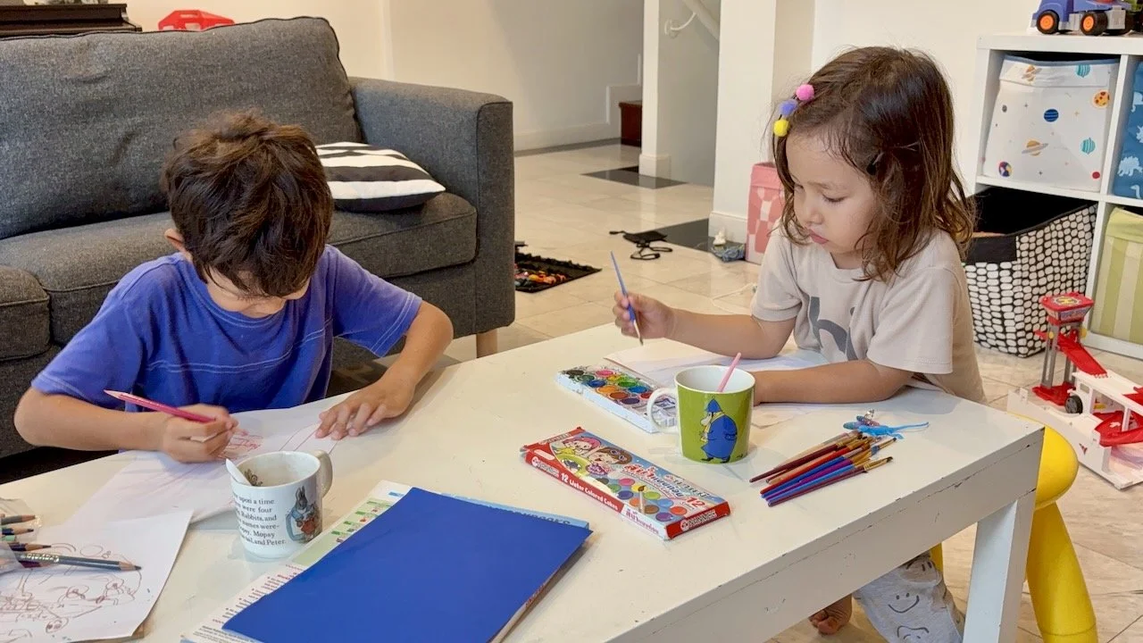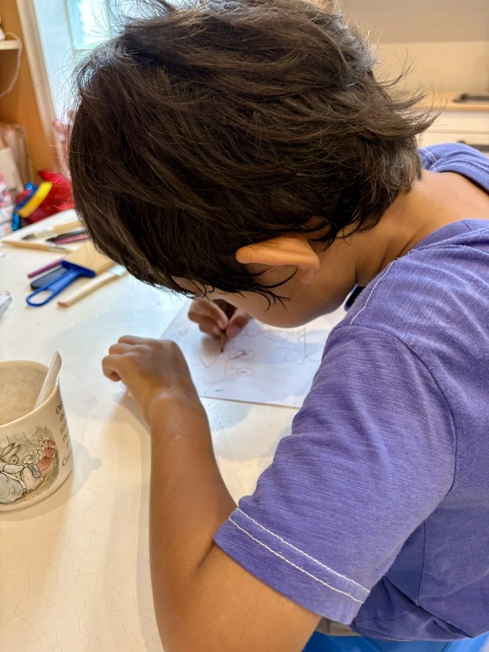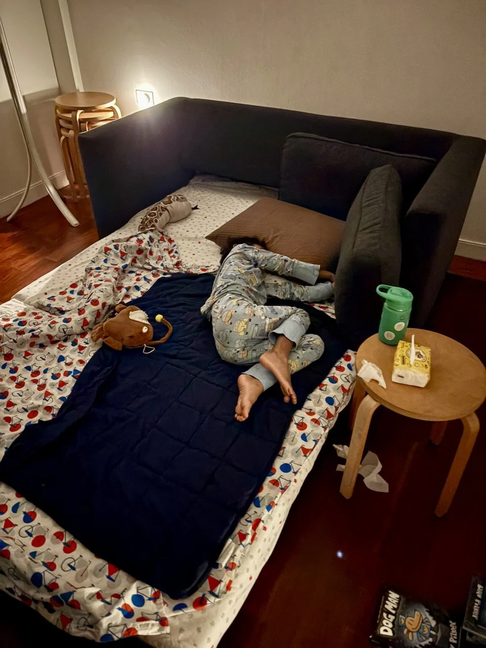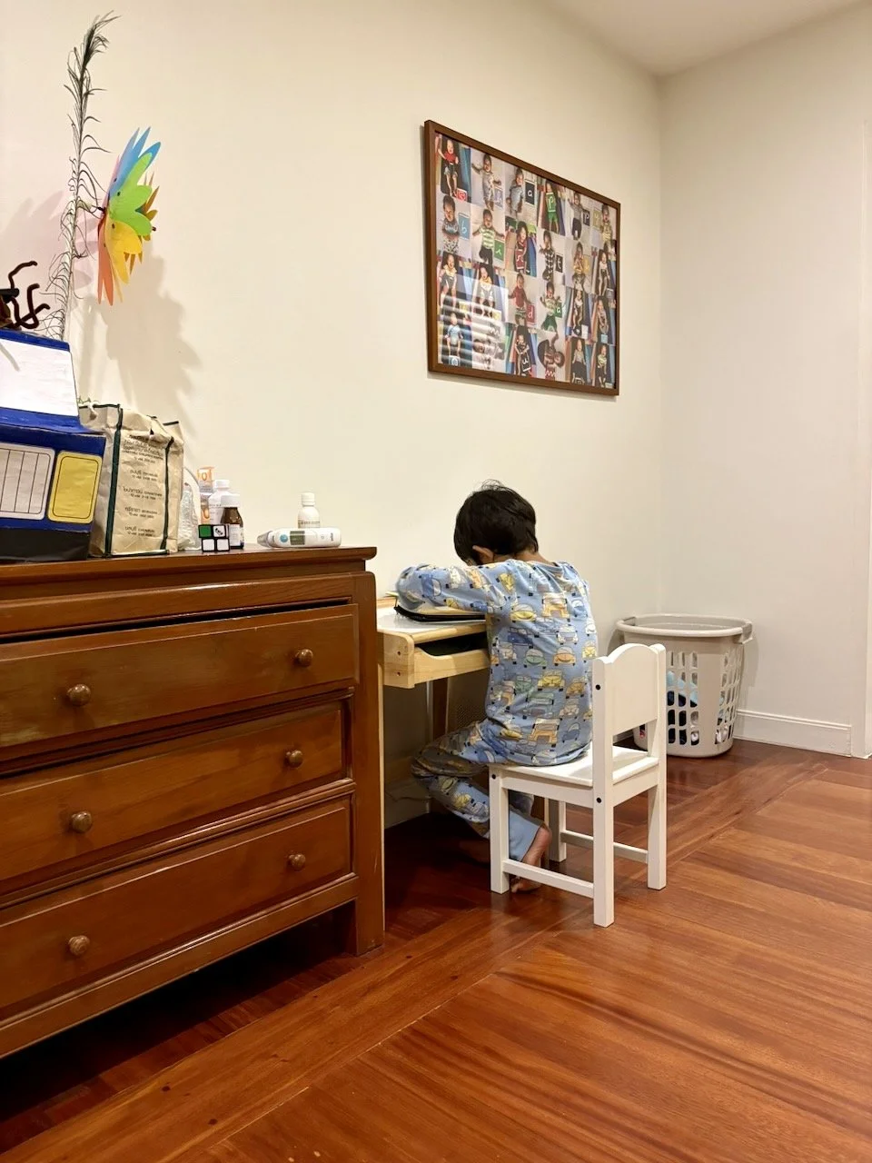 Lucy came to Arlo's piano lesson the day Dad was feeling really sick.