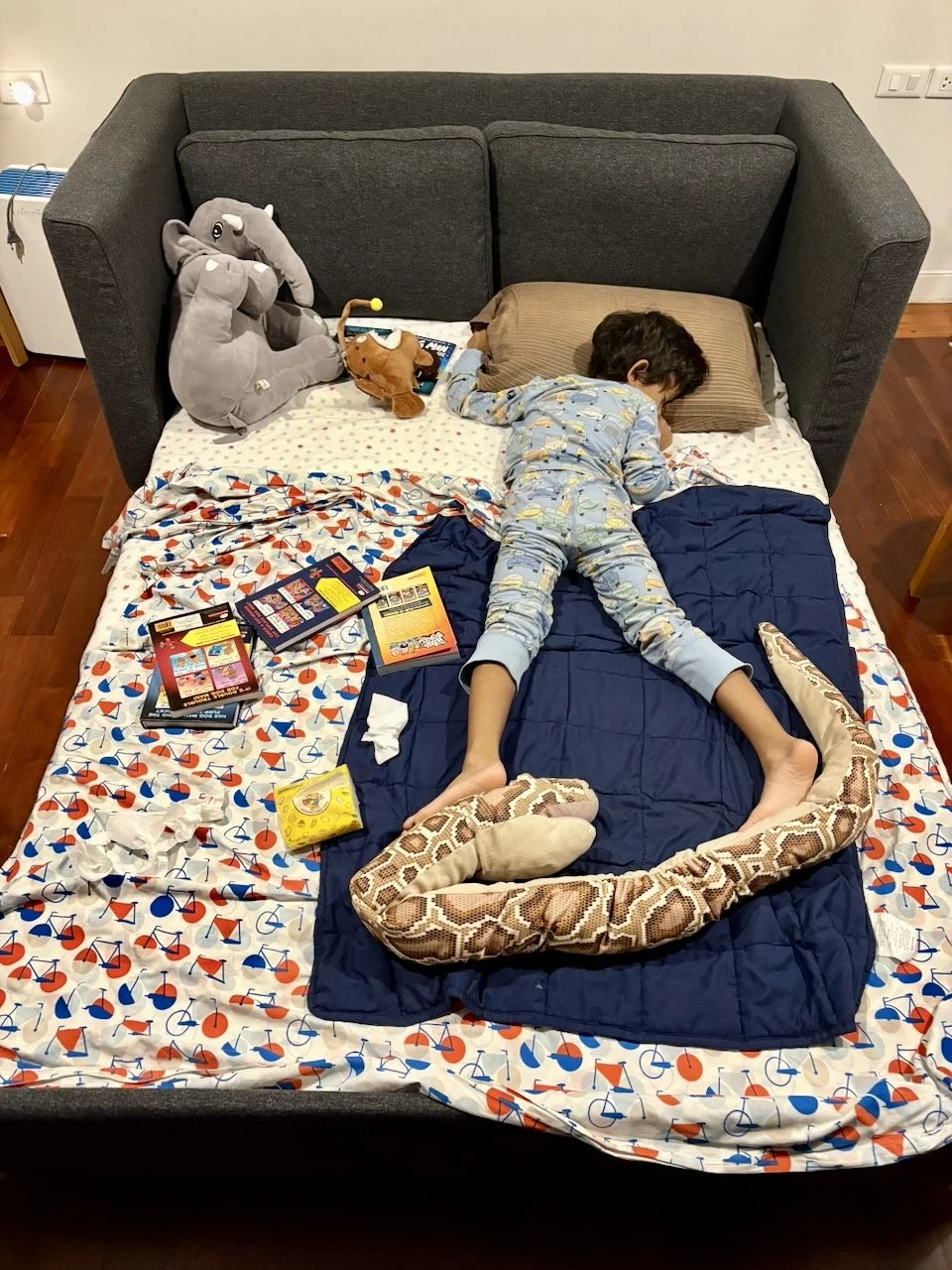 This week, we also invest in the entire Dog Man set (second-hand, of course), which is still thrilling and entertaining Arlo to this day. And it’s also Mum’s annual visit to Immigration to extend her visa; and we finally spot the famous indoor running track that we never knew about!