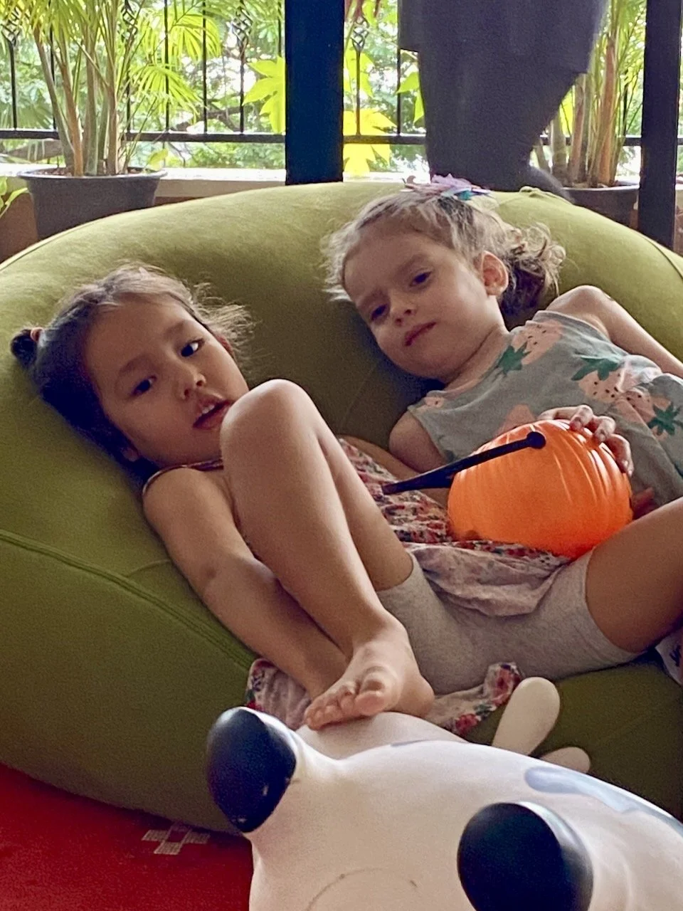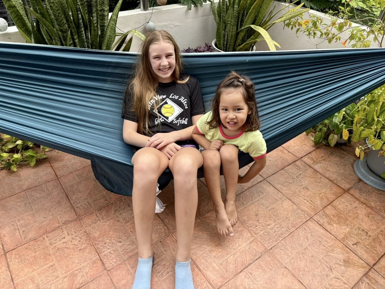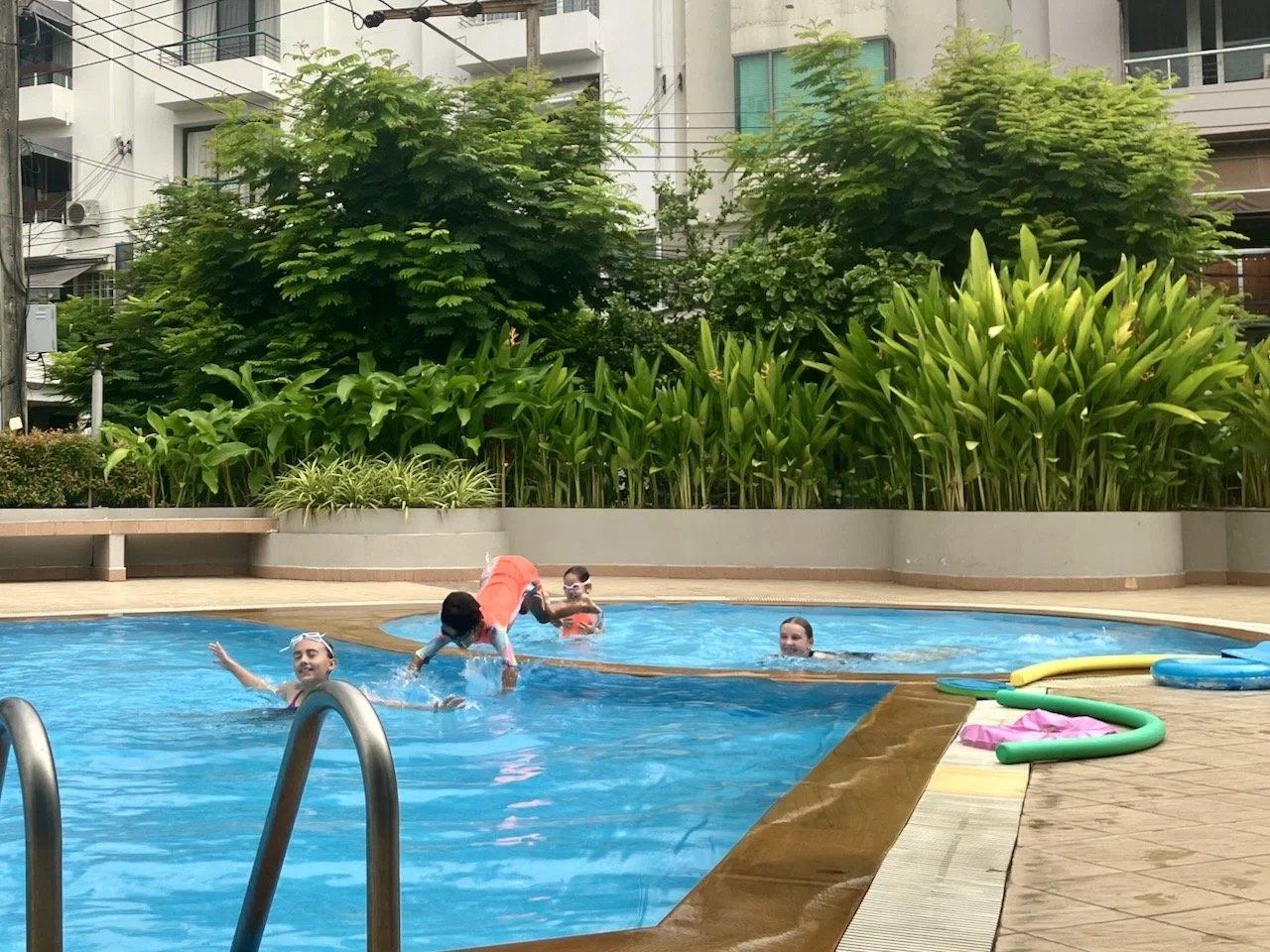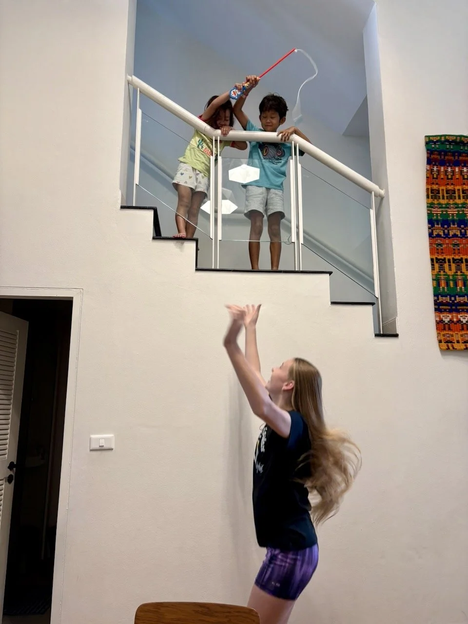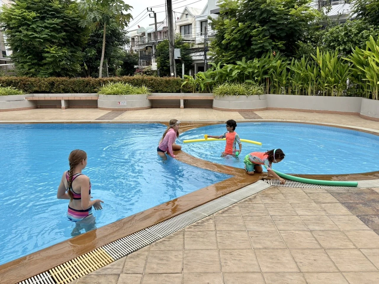 And on Wednesday (Tuesday at Annabel’s) we celebrated a low-key Loy Krathong. Both Arlo & Lucy made Krathongs at school, and Lucy floated hers with our neighbors in a small wading pool: a perfect scale for the festivities.