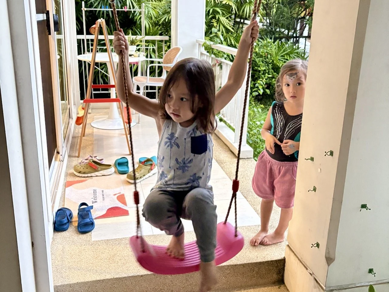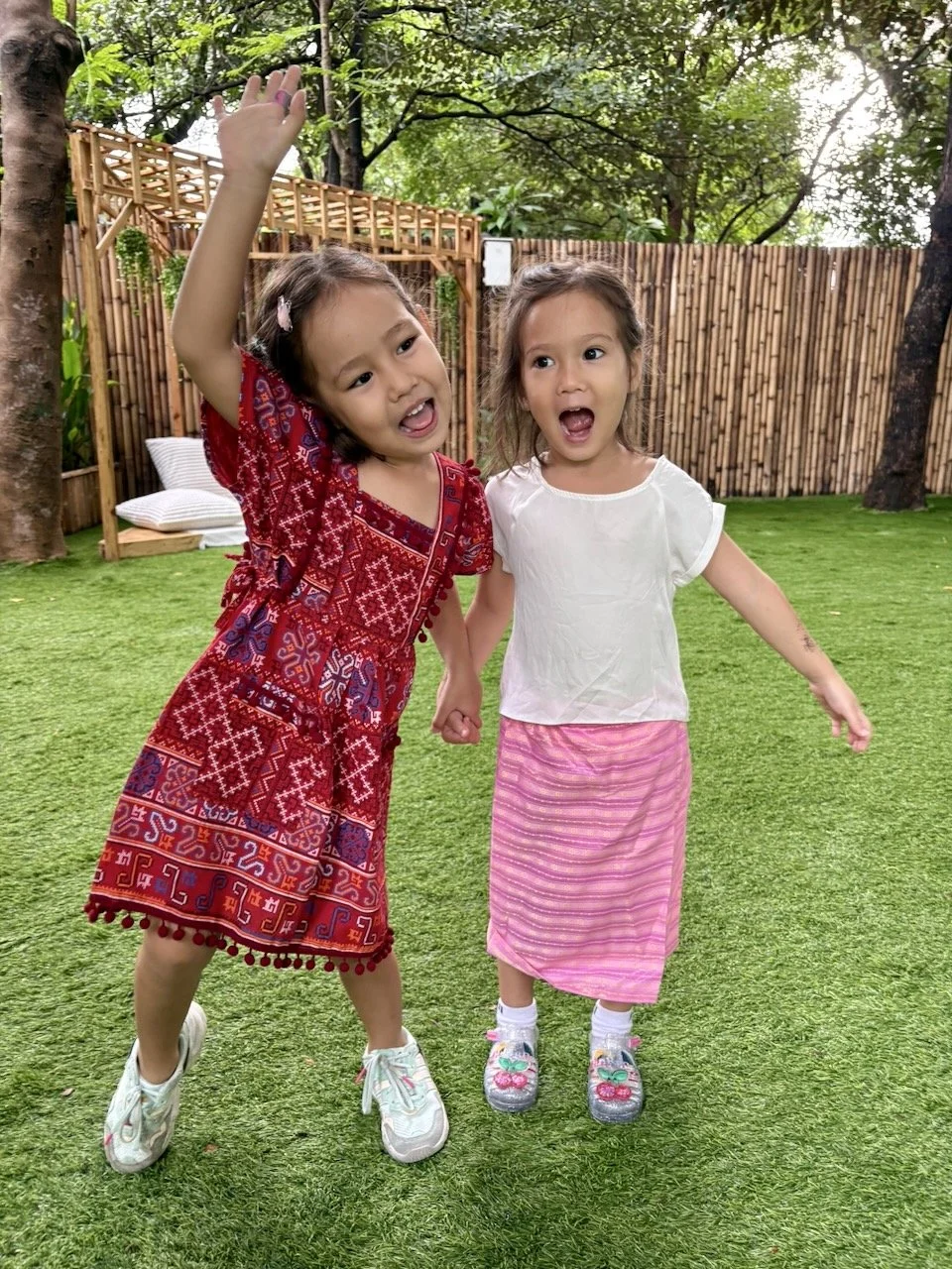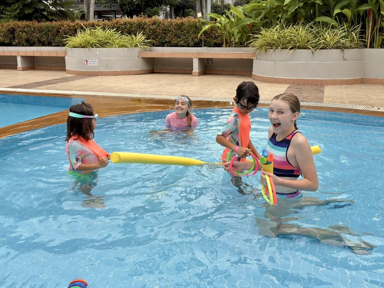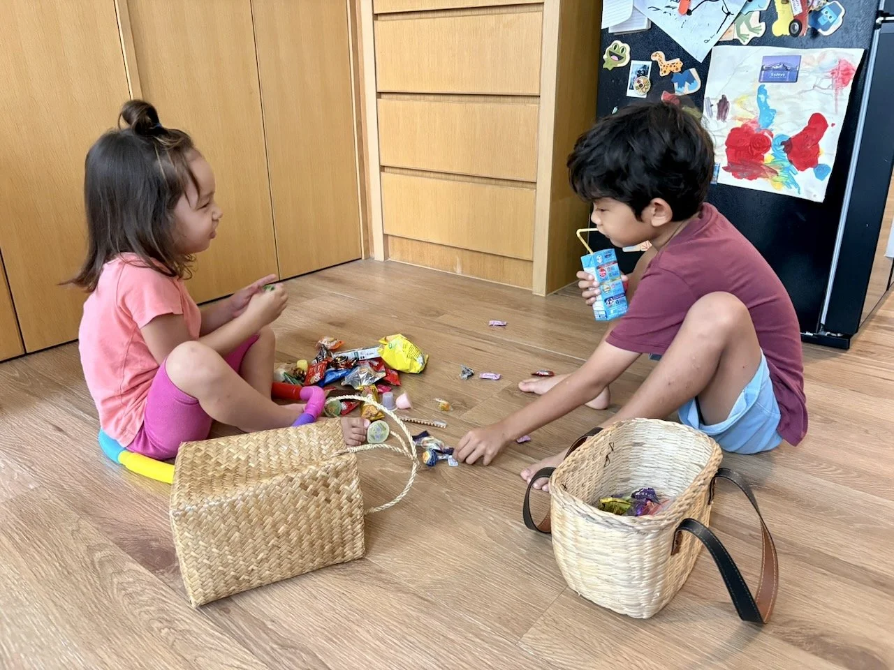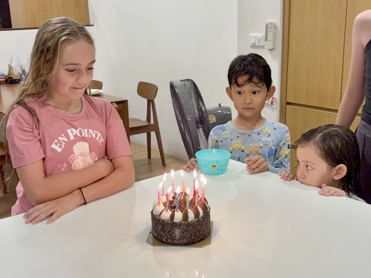 And on Wednesday (Tuesday at Annabel’s) we celebrated a low-key Loy Krathong. Both Arlo & Lucy made Krathongs at school, and Lucy floated hers with our neighbors in a small wading pool: a perfect scale for the festivities.