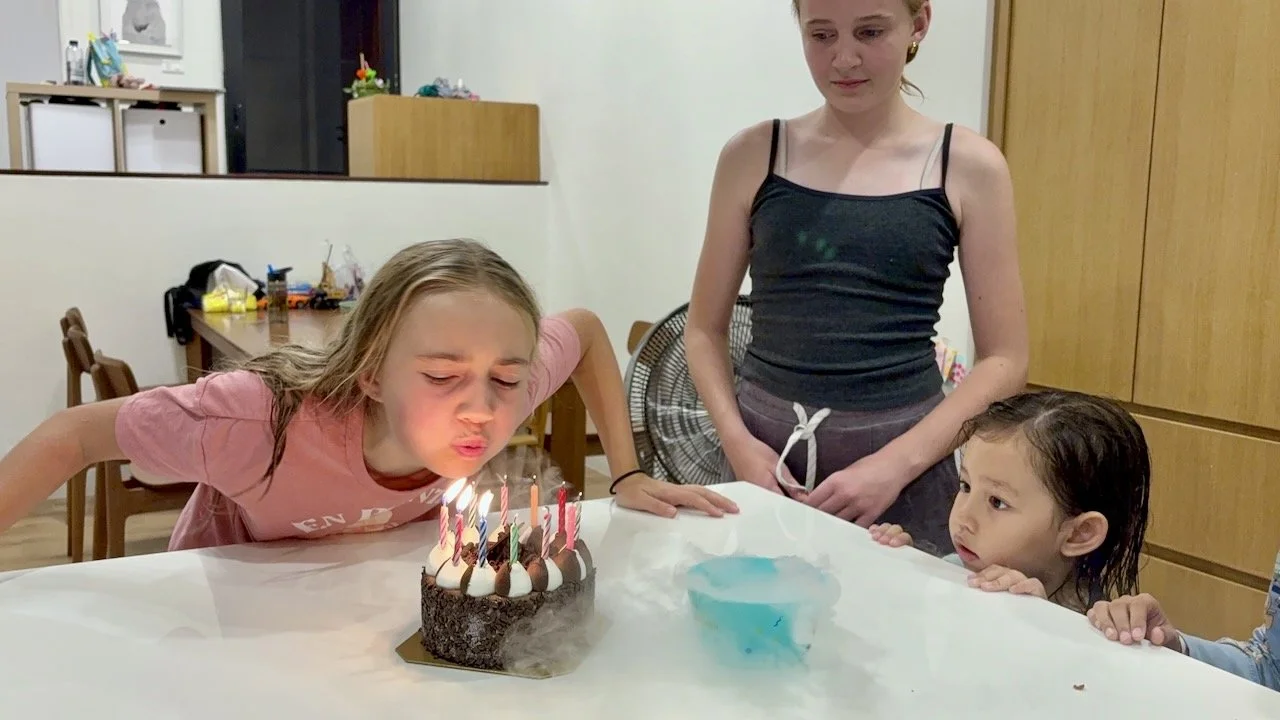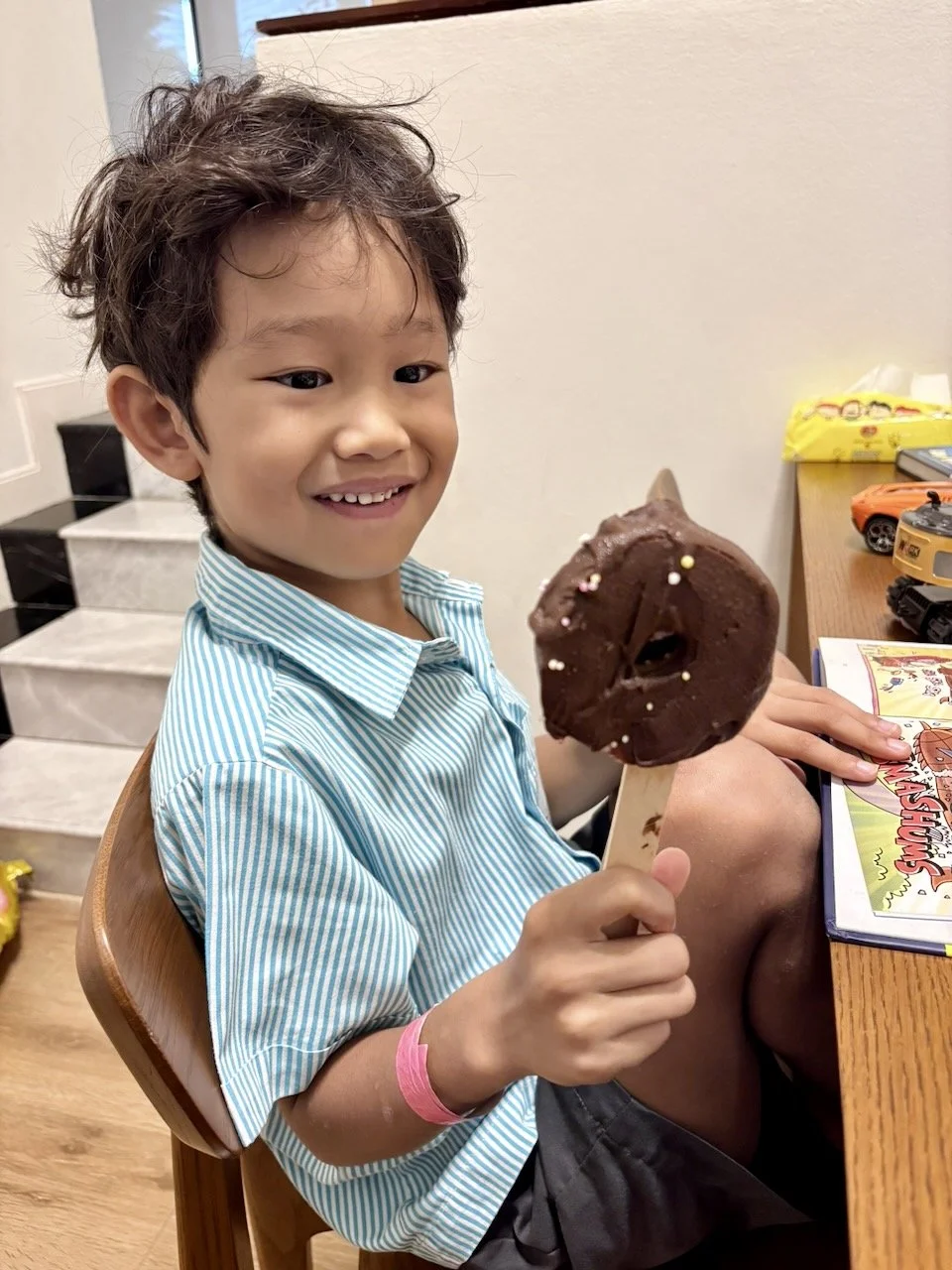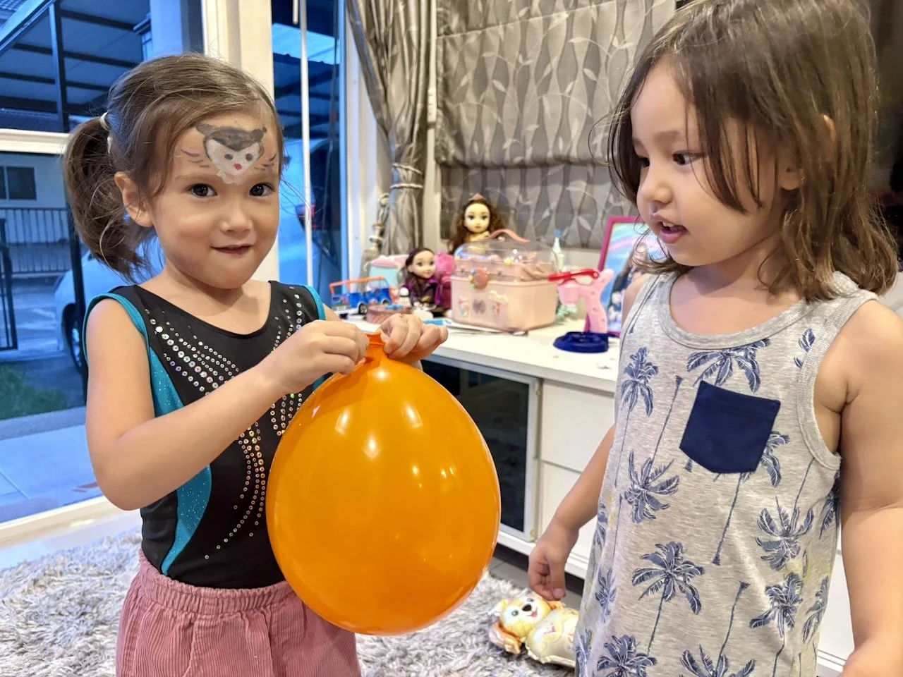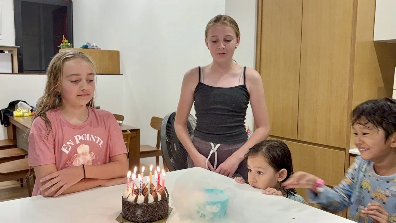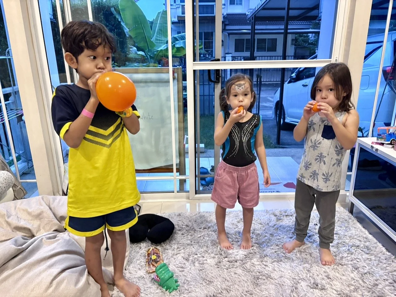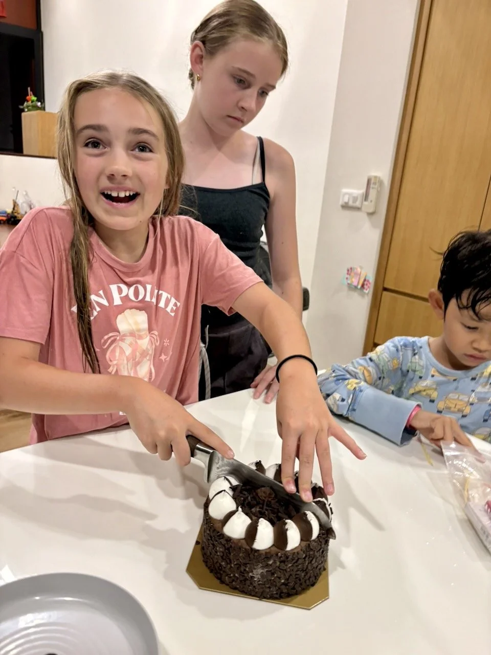And on Wednesday (Tuesday at Annabel’s) we celebrated a low-key Loy Krathong. Both Arlo & Lucy made Krathongs at school, and Lucy floated hers with our neighbors in a small wading pool: a perfect scale for the festivities.