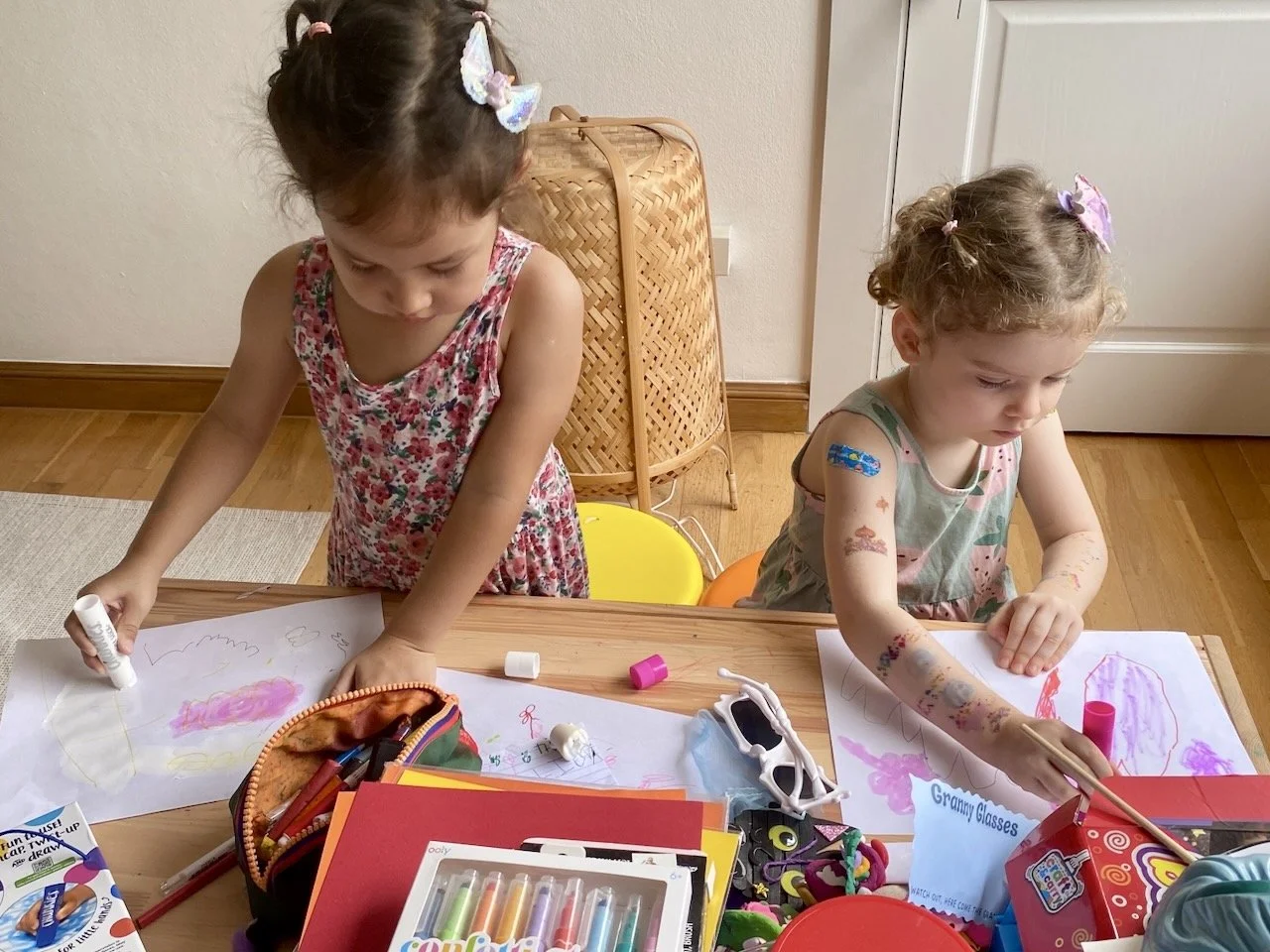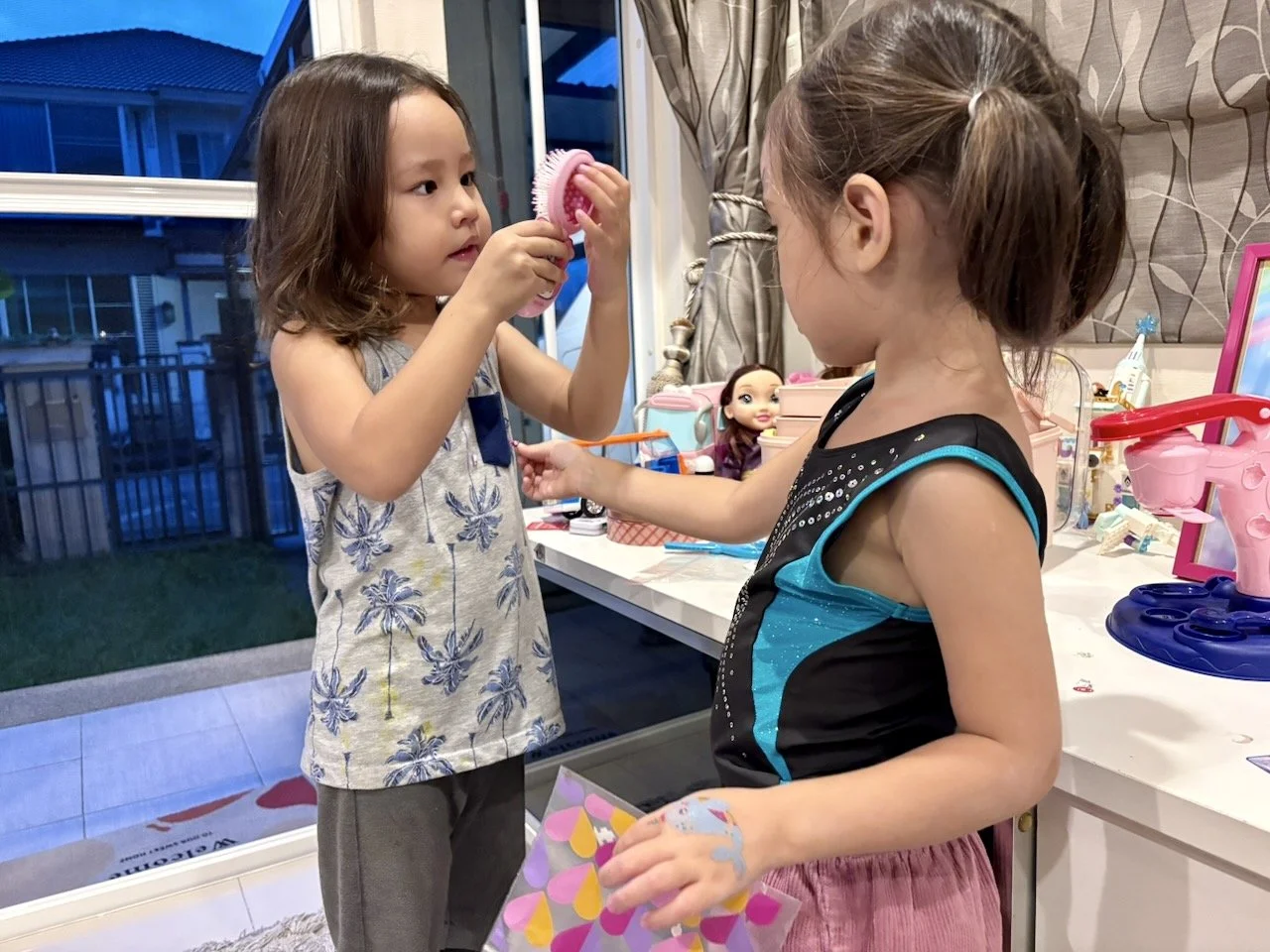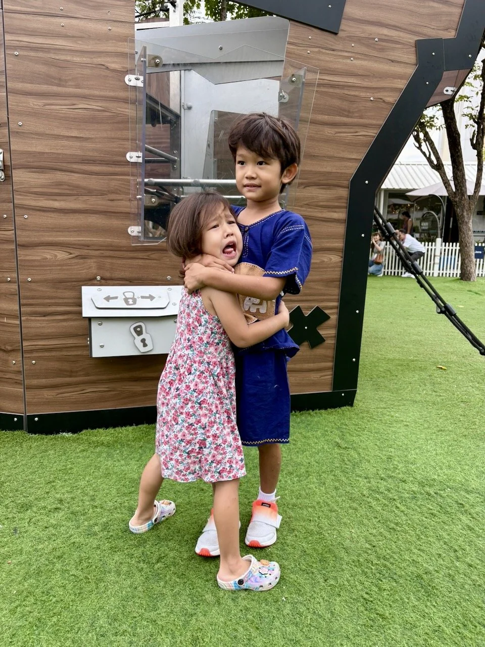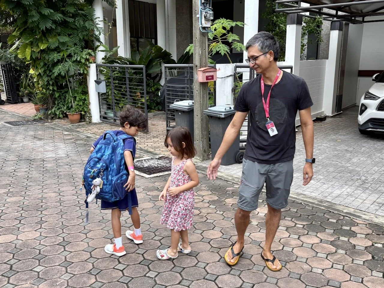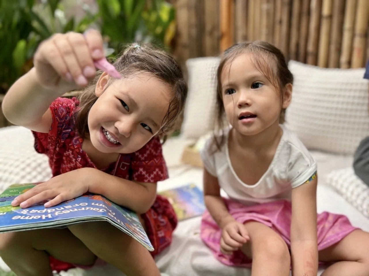 And on Wednesday (Tuesday at Annabel’s) we celebrated a low-key Loy Krathong. Both Arlo & Lucy made Krathongs at school, and Lucy floated hers with our neighbors in a small wading pool: a perfect scale for the festivities.