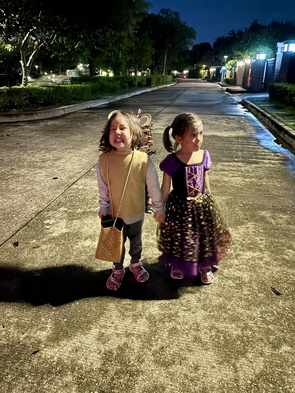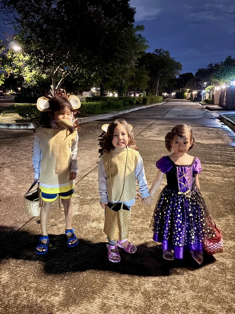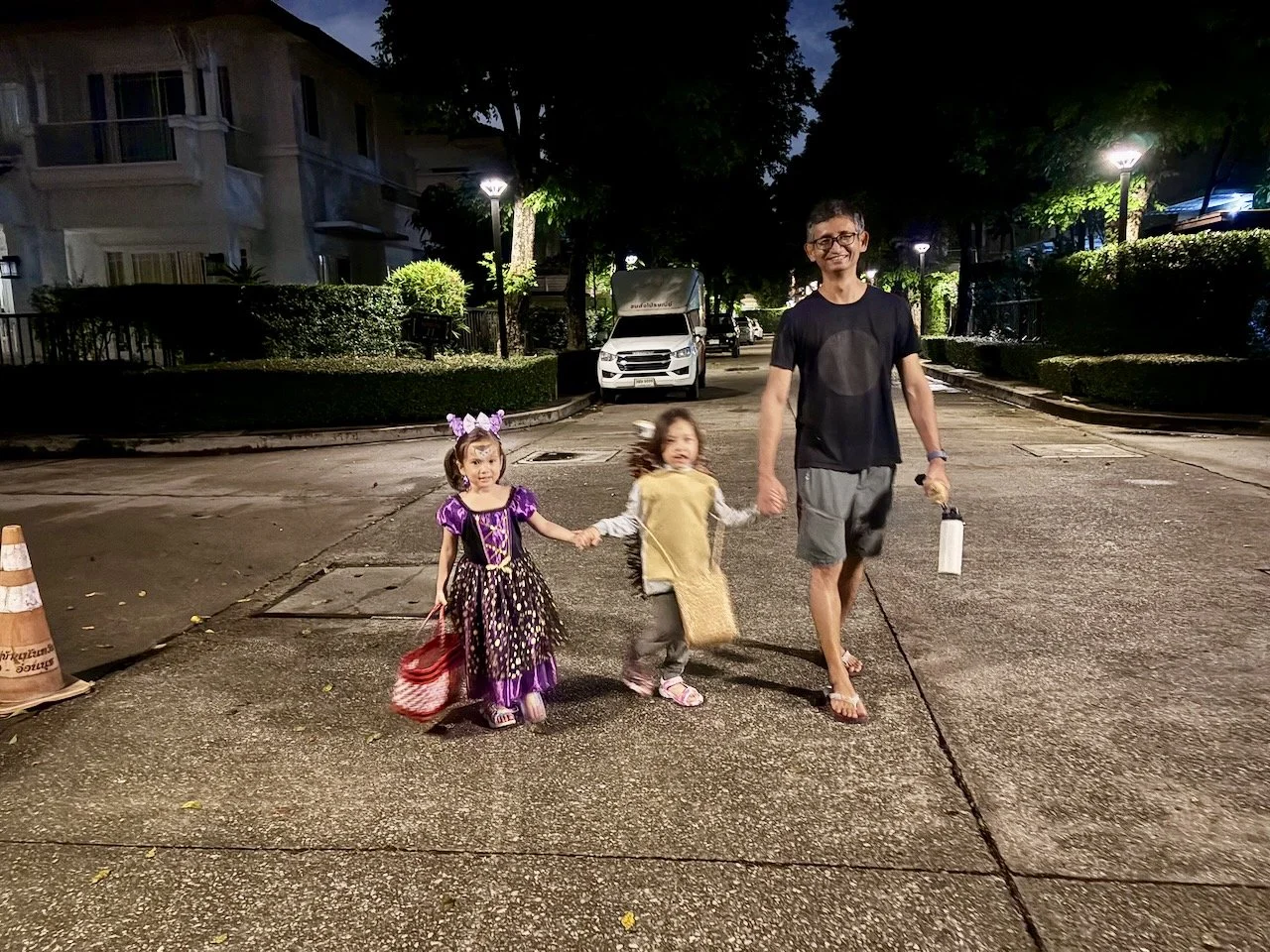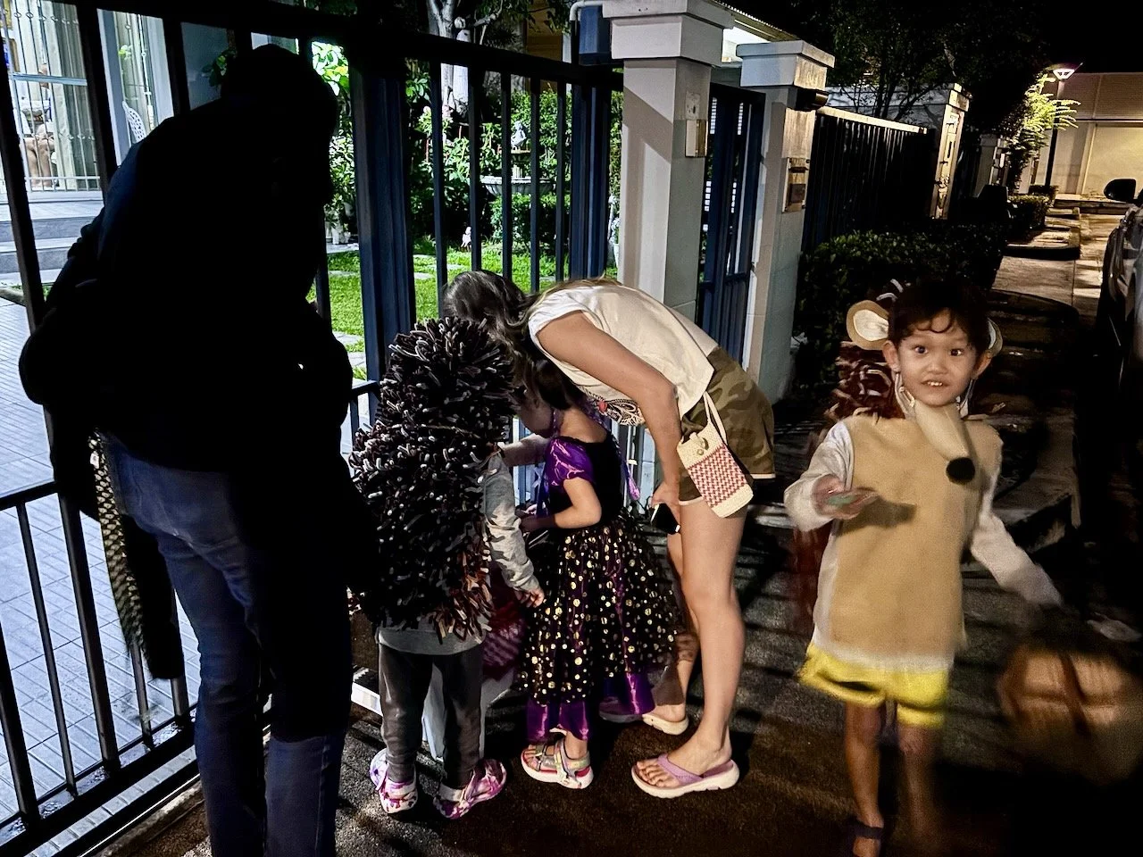 On Halloween day, the children (but not the parents) enjoyed a low-key celebration in the classrooms at Annabel’s. Lucy wore her hedgehog costume for about 6 minutes - which is one minute longer than last year. And on Halloween night, we were kindly invited to join the trick-or-treating at Lucy’s friend Emily’s Moo Baan, which continued as planned.