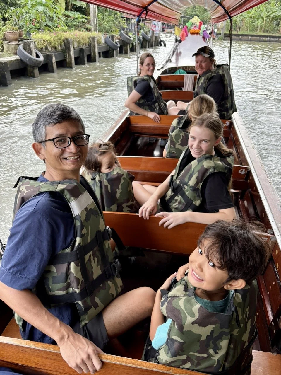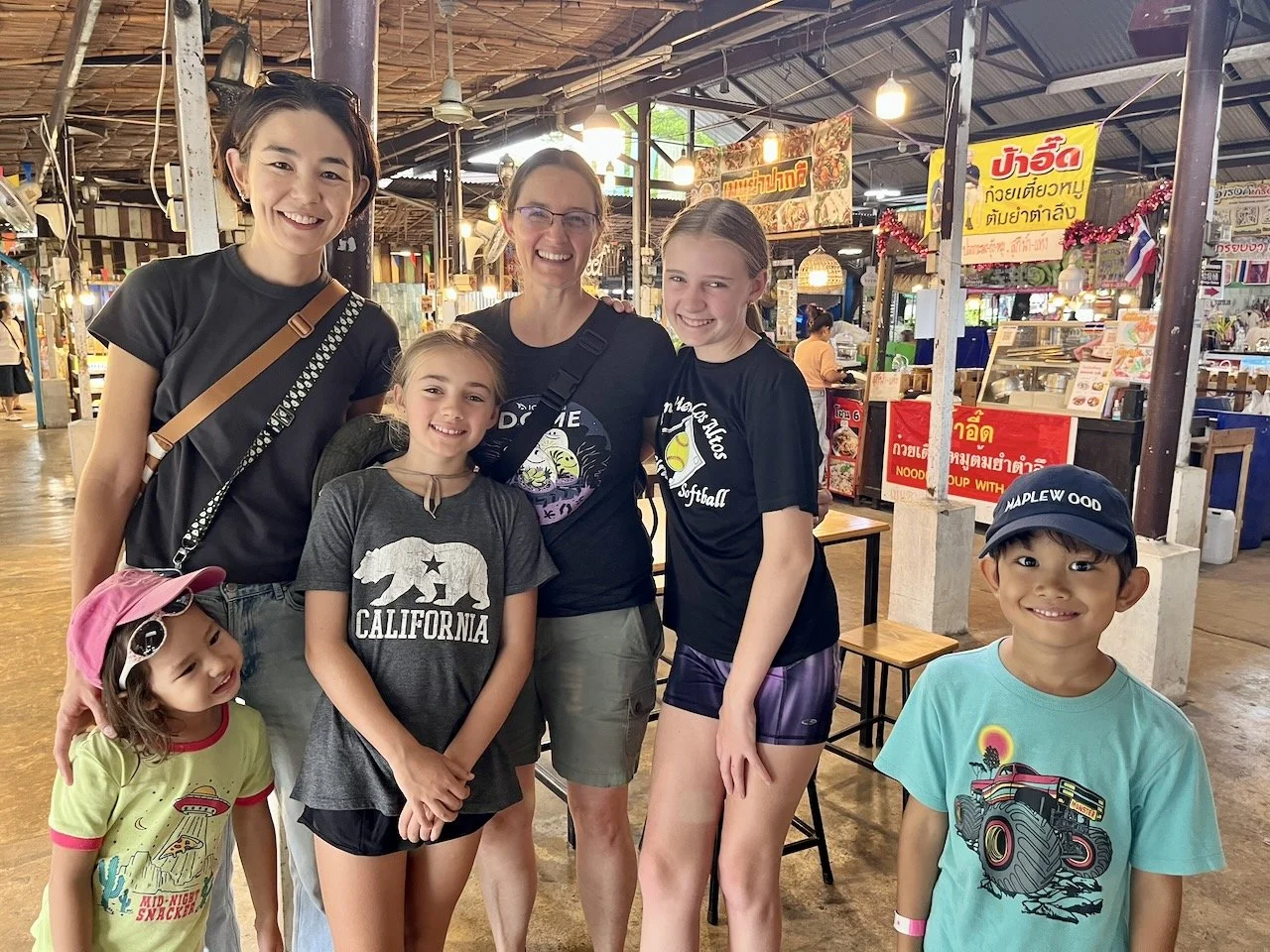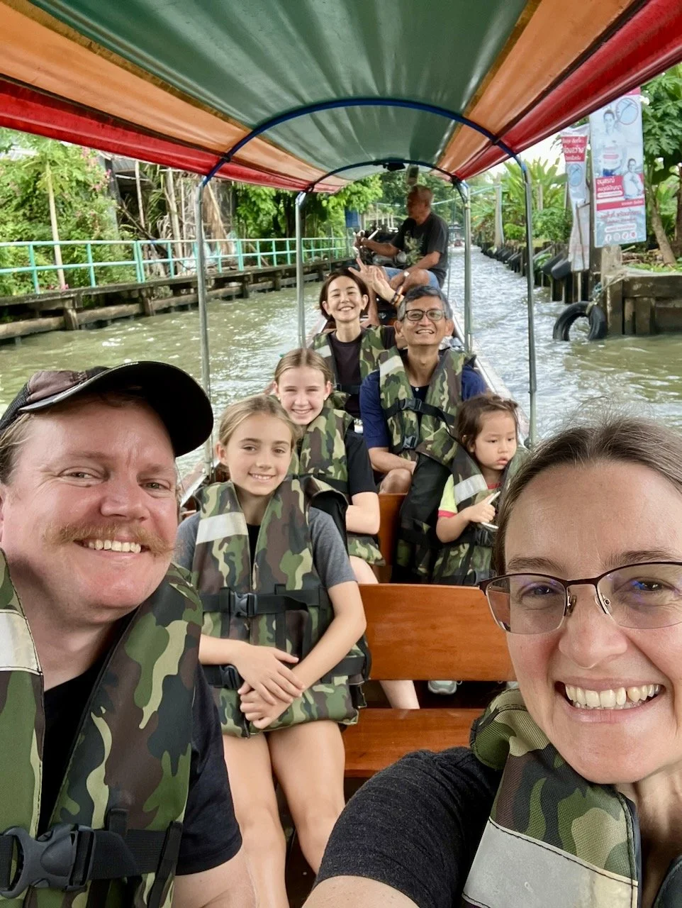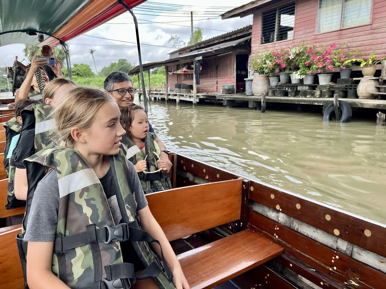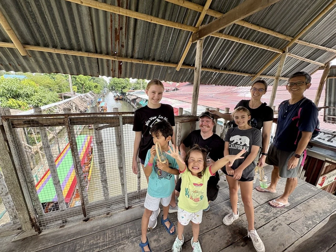 On Saturday night, our grad school friends Steve & Teresa arrived in Bangkok with their daughters, for a 1-week stay. On Sunday, we took them to a floating market in Taling Chan, including the same canal tour we did with Jas & Josh in 2024. Of course, we came home with another beautiful orchid from the orchid farms. All 4 kids got along really well, and enjoyed the week together!