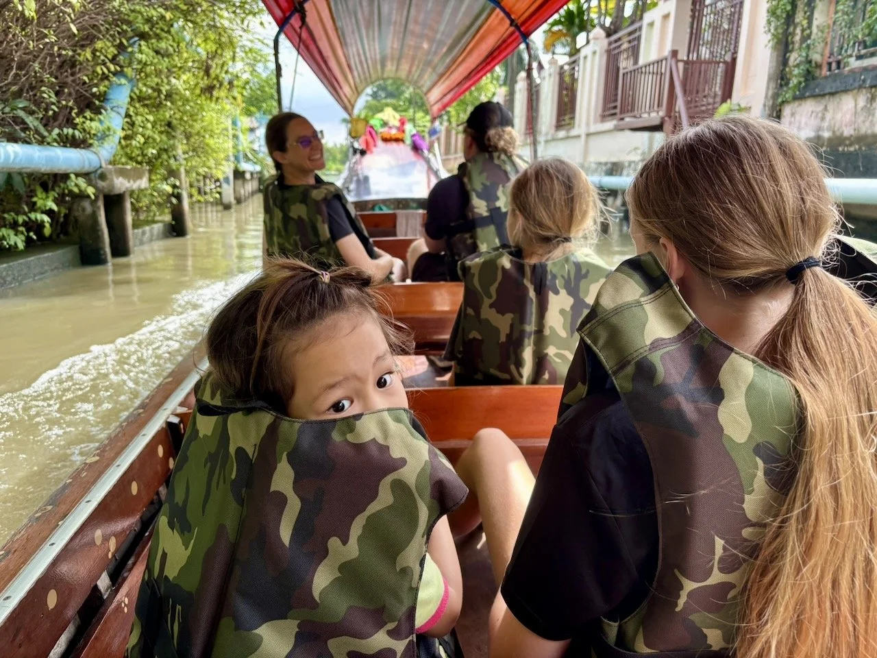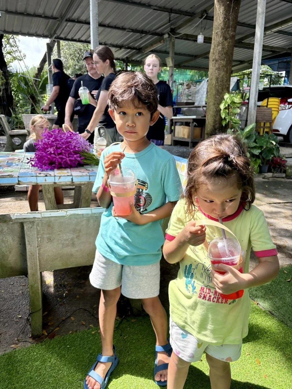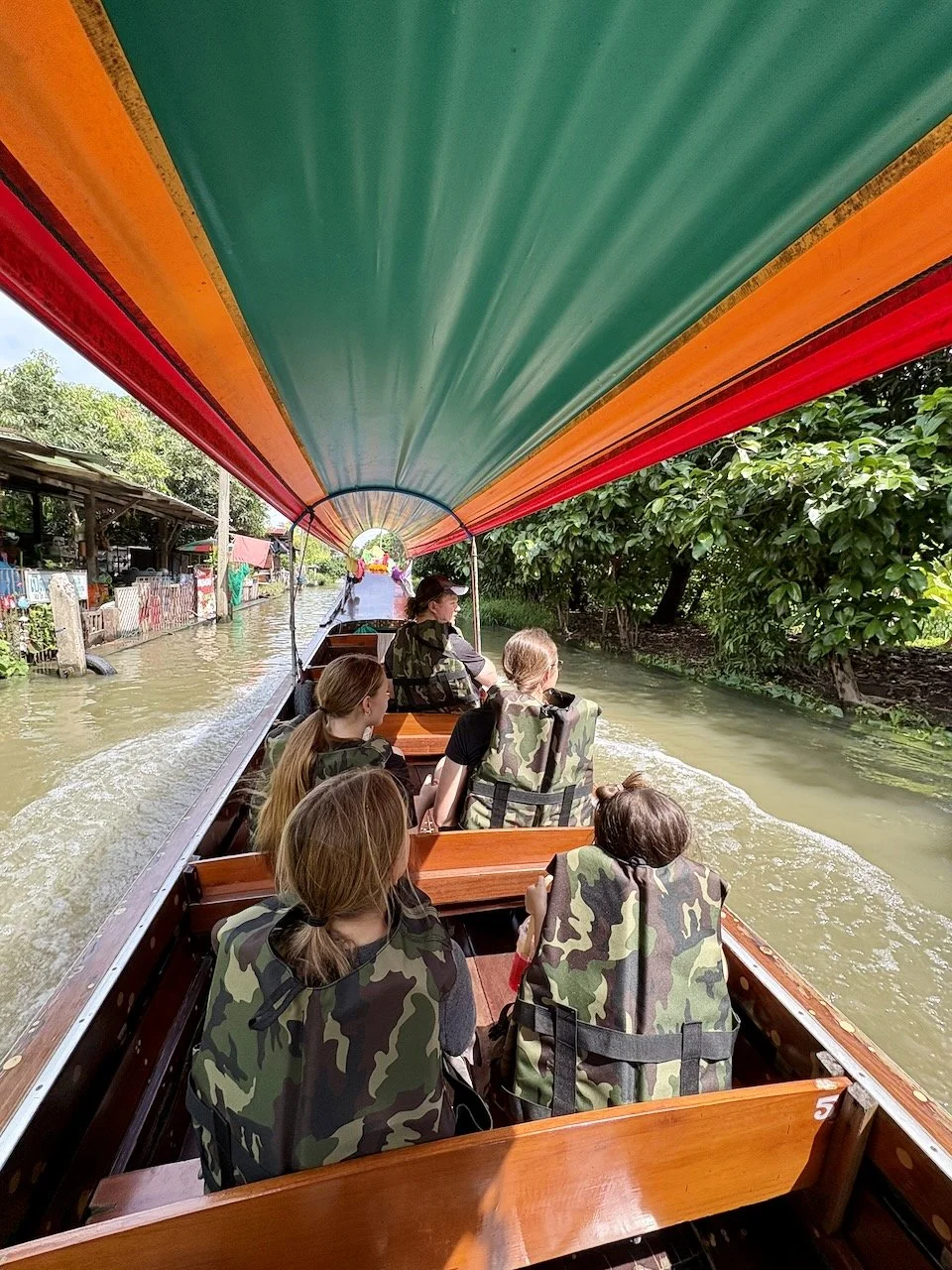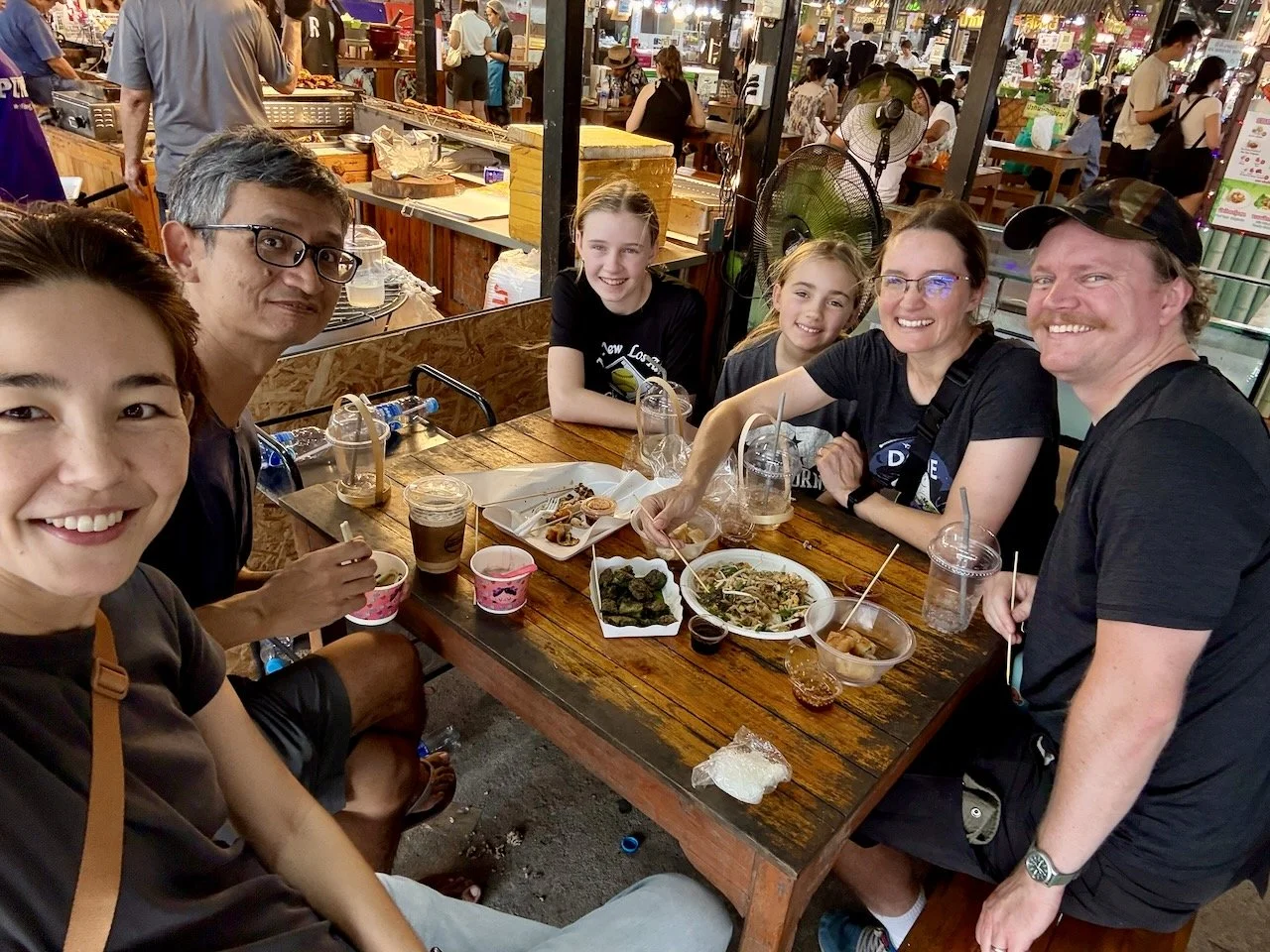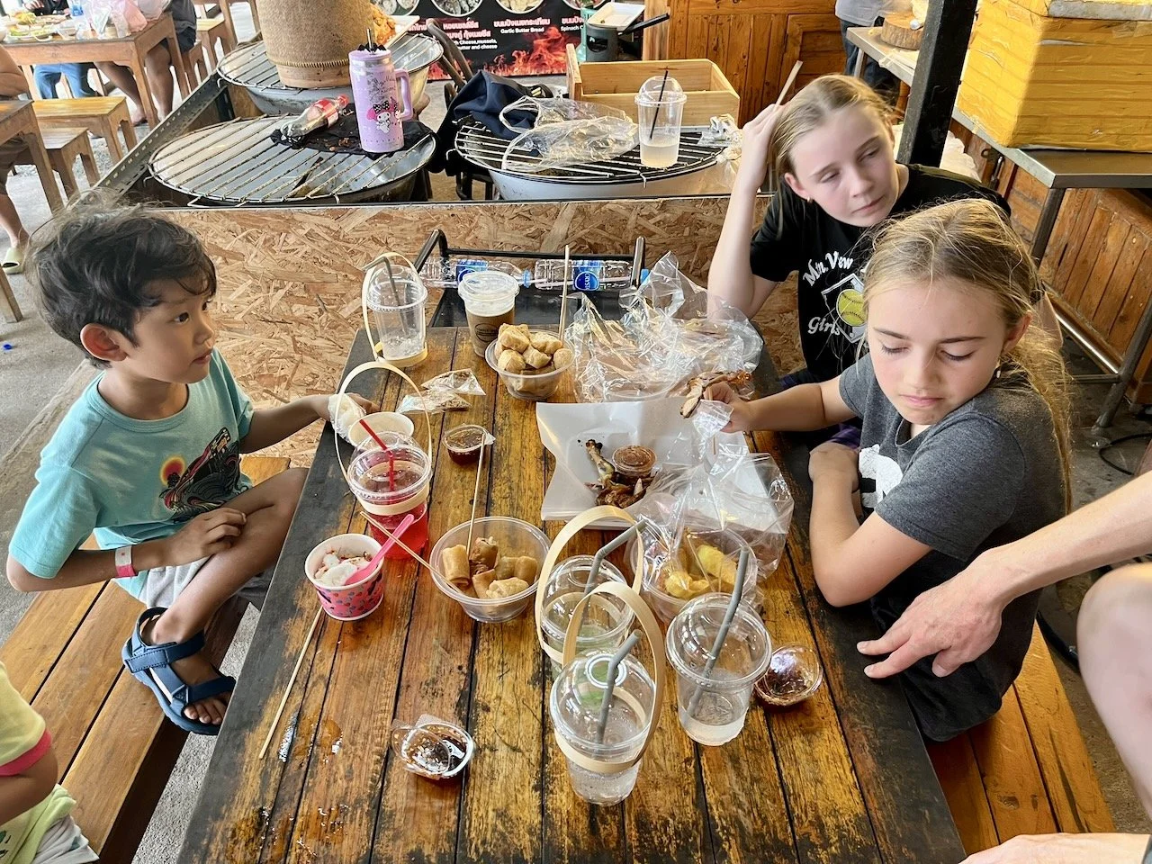 On Saturday night, our grad school friends Steve & Teresa arrived in Bangkok with their daughters, for a 1-week stay. On Sunday, we took them to a floating market in Taling Chan, including the same canal tour we did with Jas & Josh in 2024. Of course, we came home with another beautiful orchid from the orchid farms. All 4 kids got along really well, and enjoyed the week together!