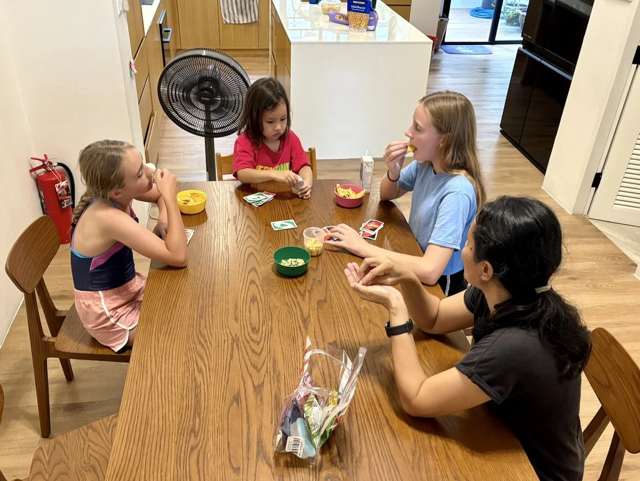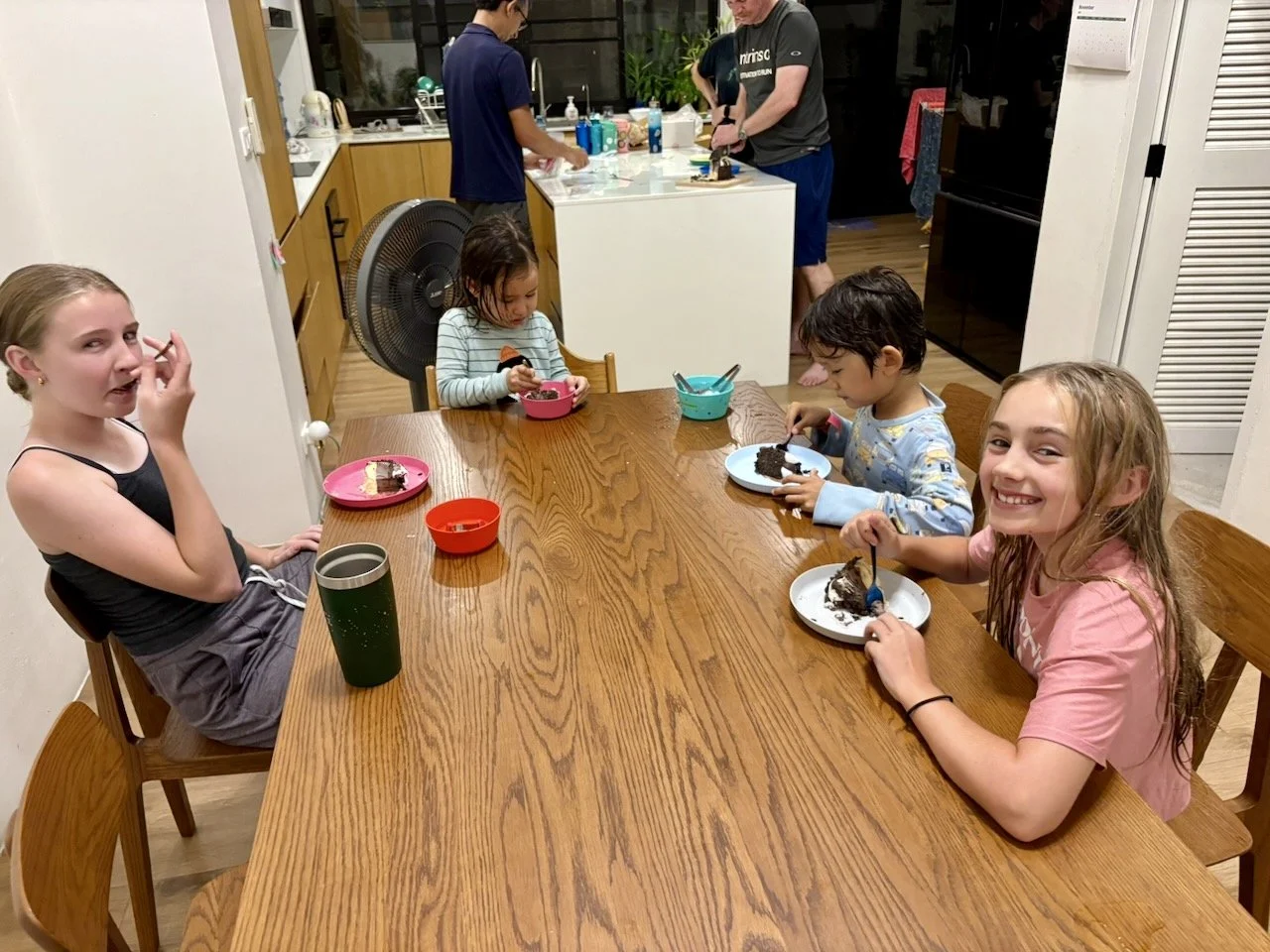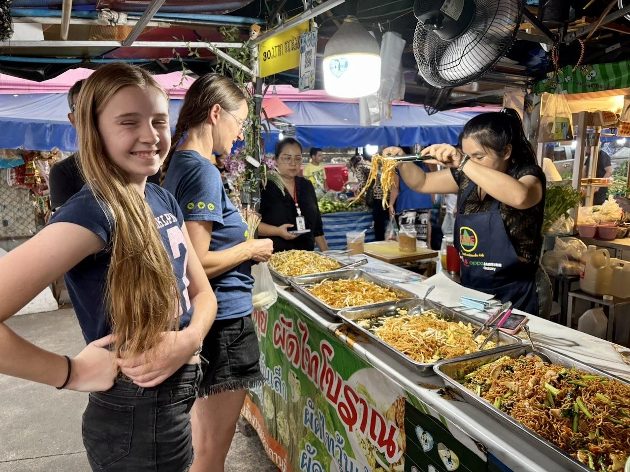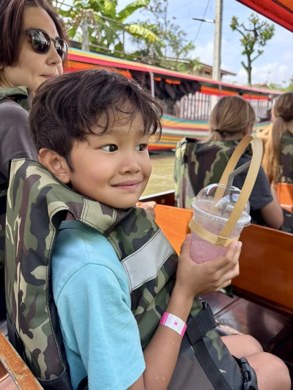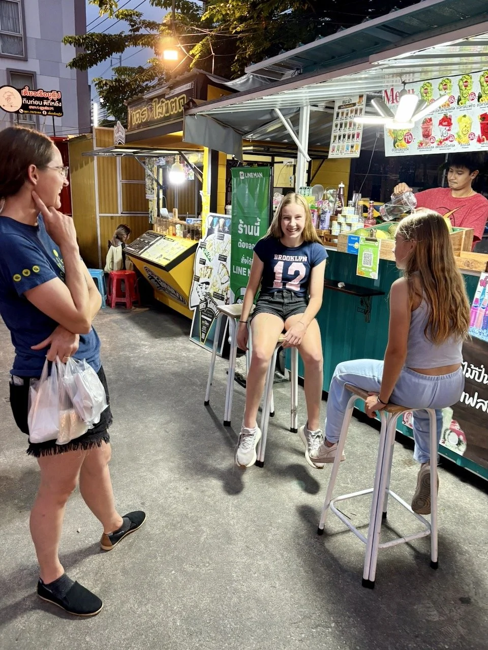 On Saturday night, our grad school friends Steve & Teresa arrived in Bangkok with their daughters, for a 1-week stay. On Sunday, we took them to a floating market in Taling Chan, including the same canal tour we did with Jas & Josh in 2024. Of course, we came home with another beautiful orchid from the orchid farms. All 4 kids got along really well, and enjoyed the week together!