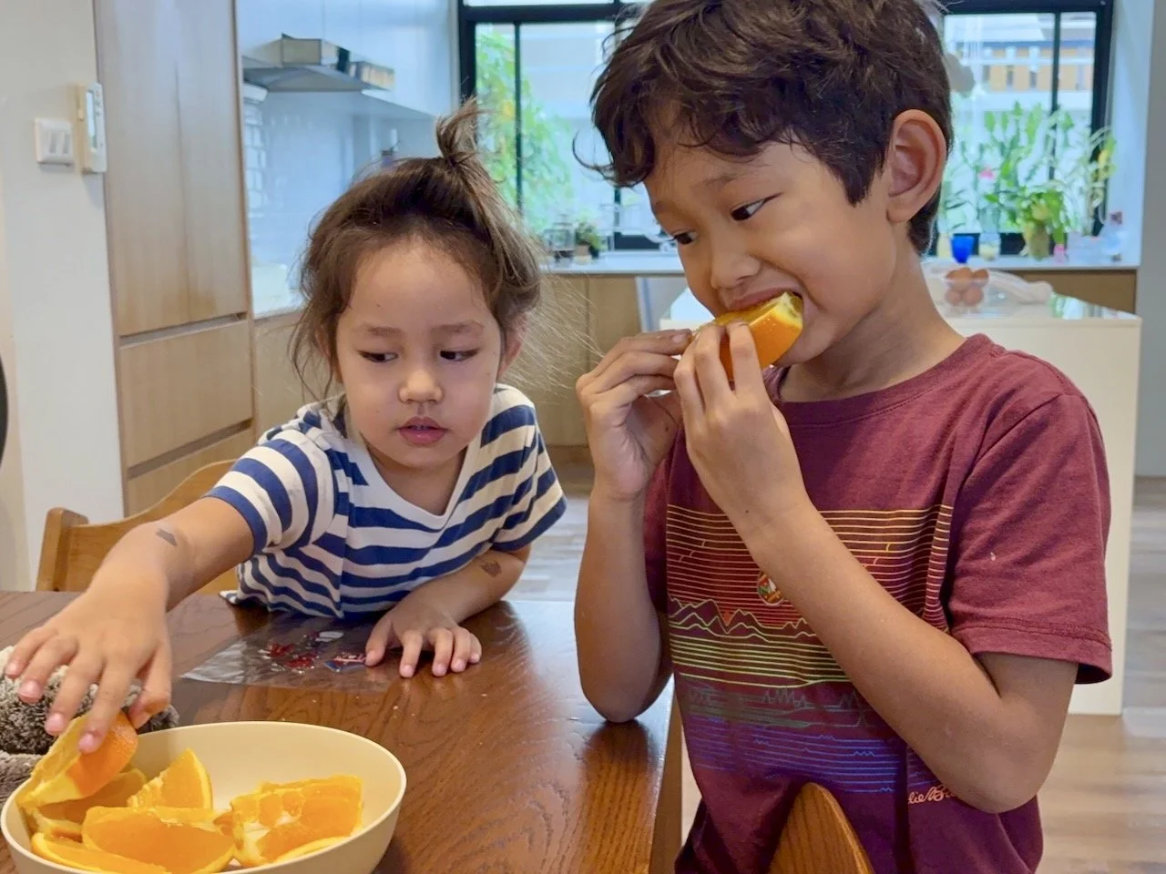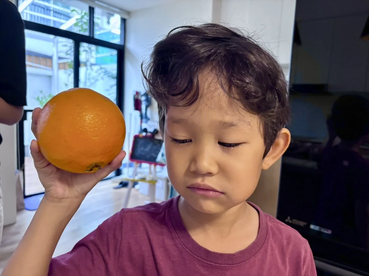 Souvenir from Paris: an orange the size of Arlo's head!